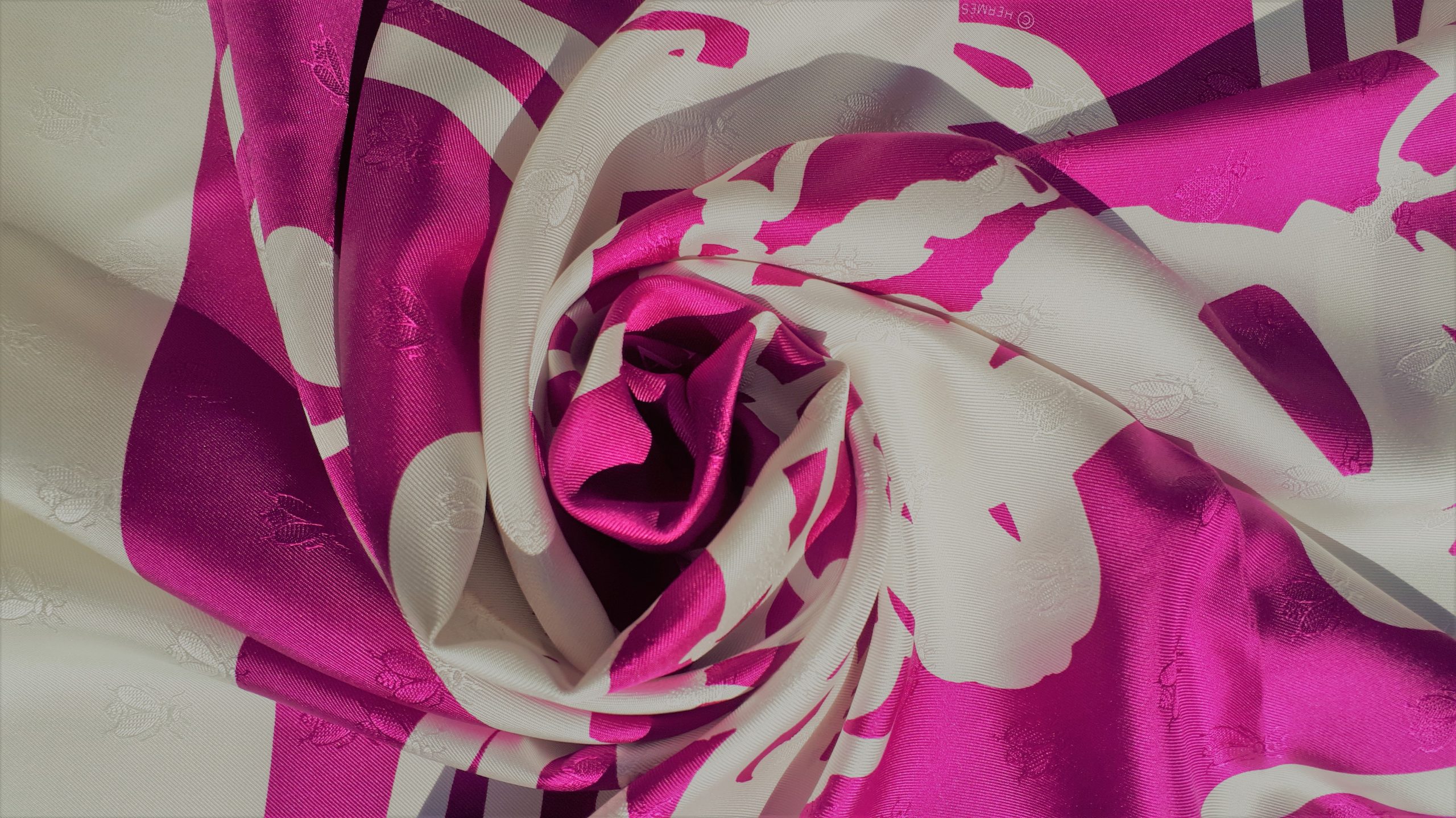 Il est à  l’état neuf et réalisé dans une belle  soie façonnée aux motifs d’abeille