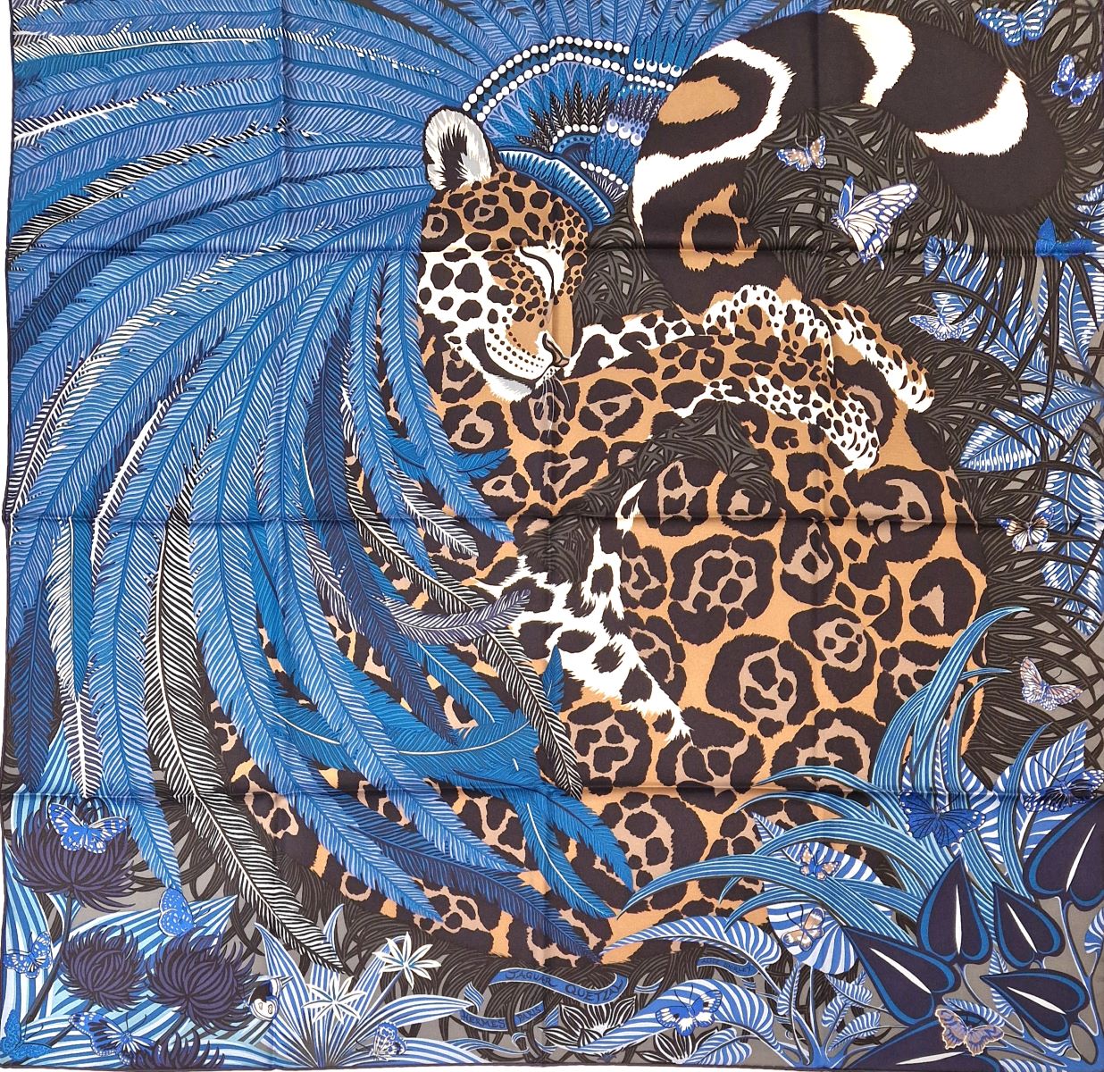 Carré Hermès à l’état neuf Jaguar Quetzal par Alice Shirley