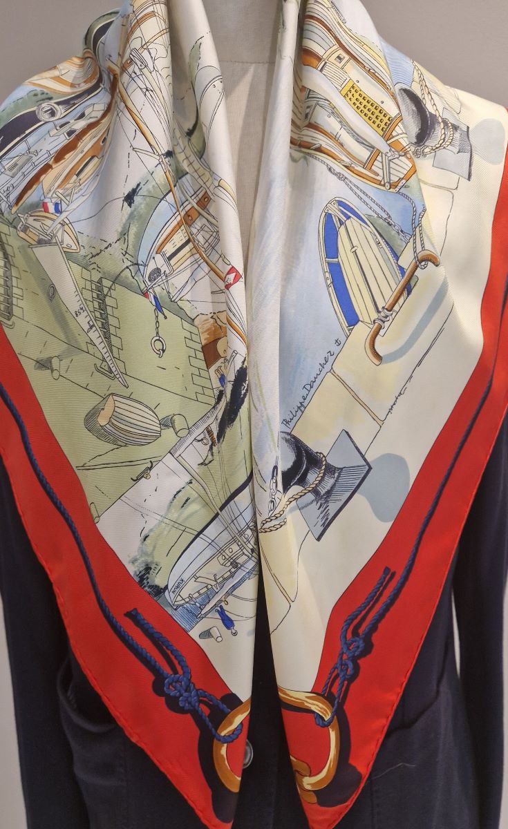 Carré Hermès Belle île en mer , le port par Philippe Dauchez 1960