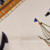 This design pays homage to seaside life on the Normandy coast: striped beach huts, parasols, kites, everyday objects, and Anglo-Norman architecture.