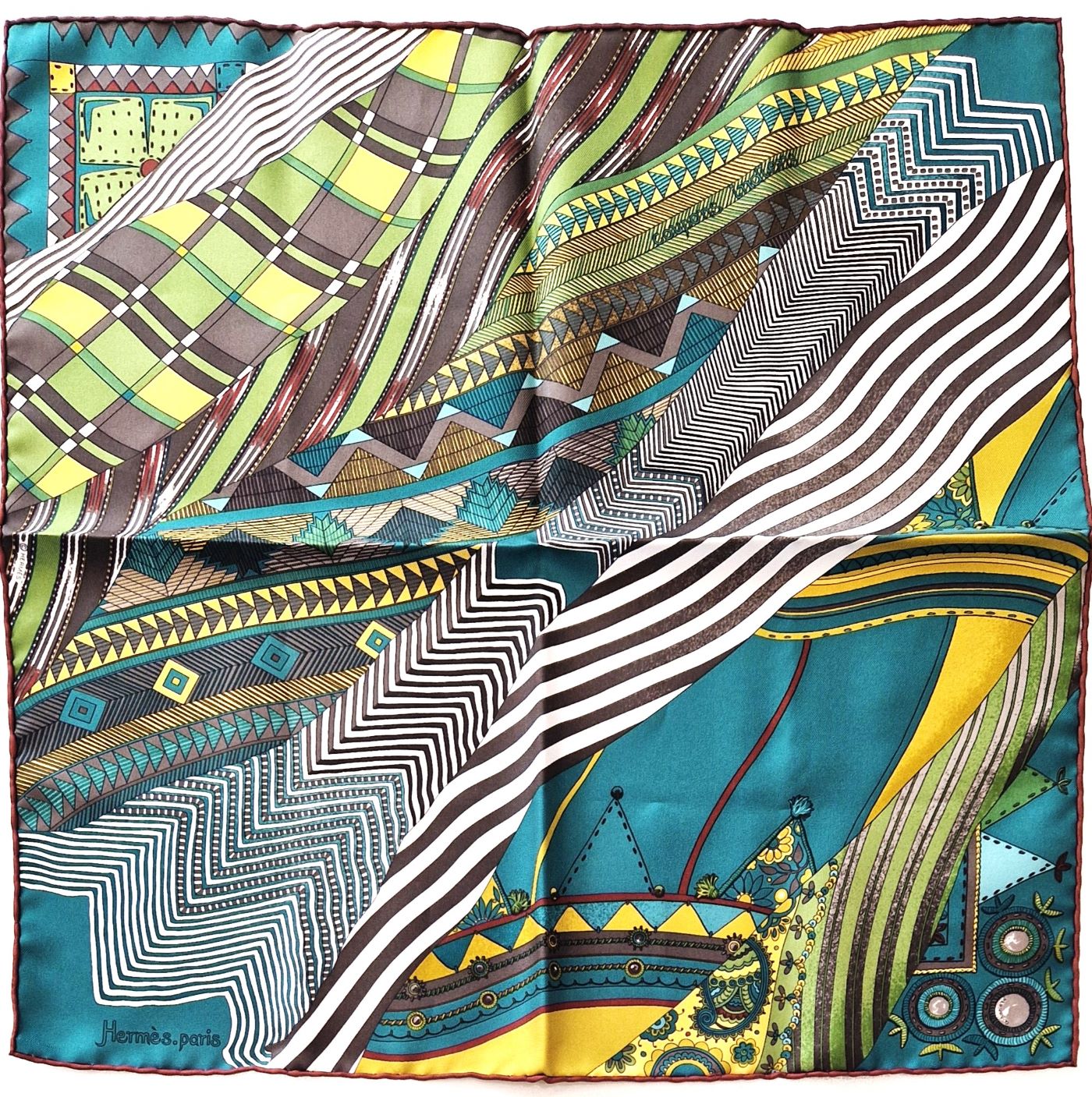 Coloris : vert, jaune safran, blanc, marron