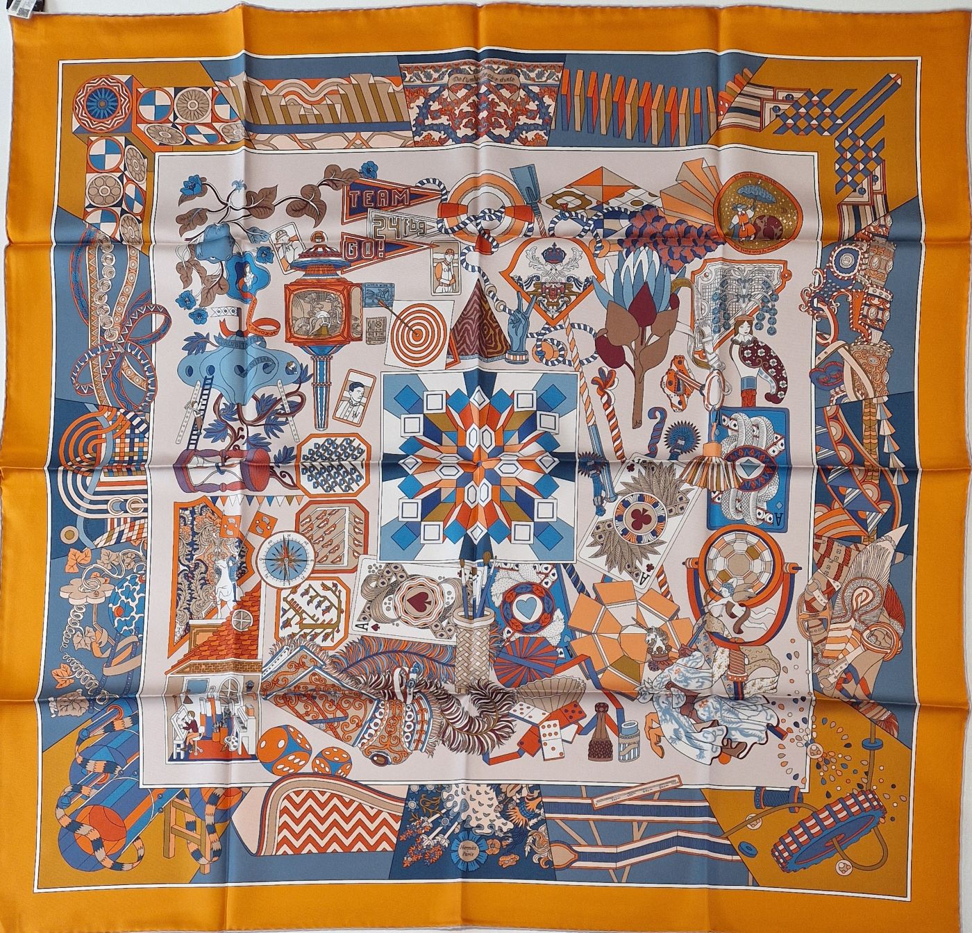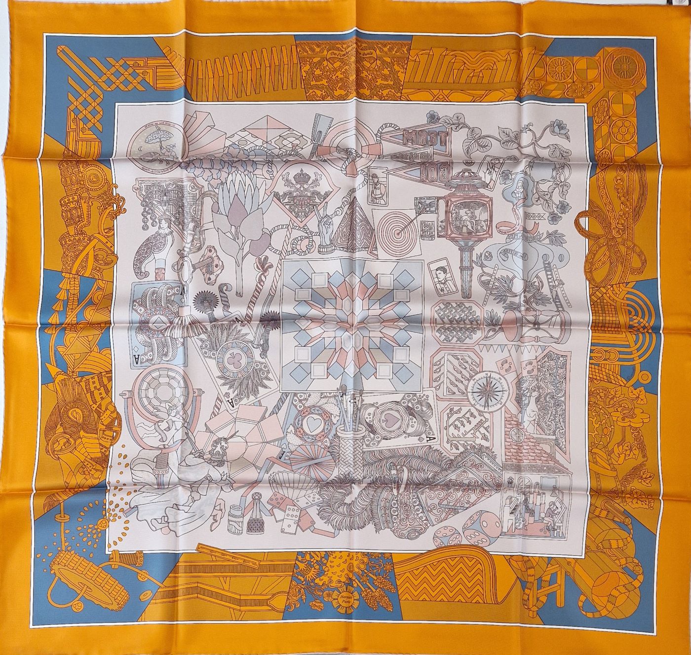 Avec ce carré double face, le dessinateur Pierre Marie retrace dix ans de création pour la maison Hermès, depuis L’Ombrelle magique, proposé en 2010, jusqu’au récent Duels oniriques.
