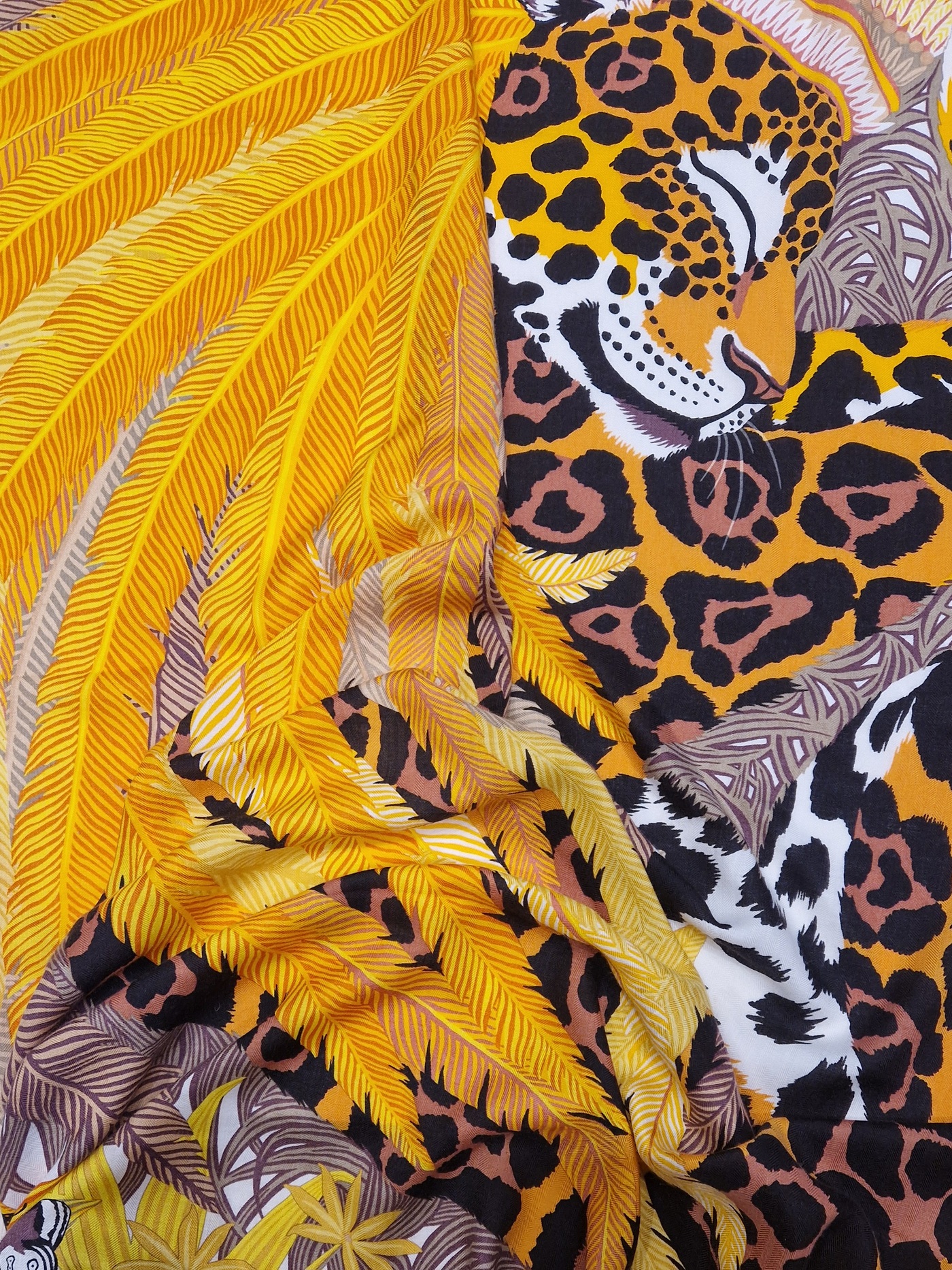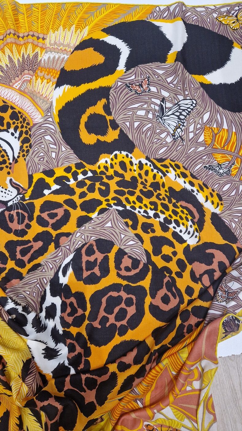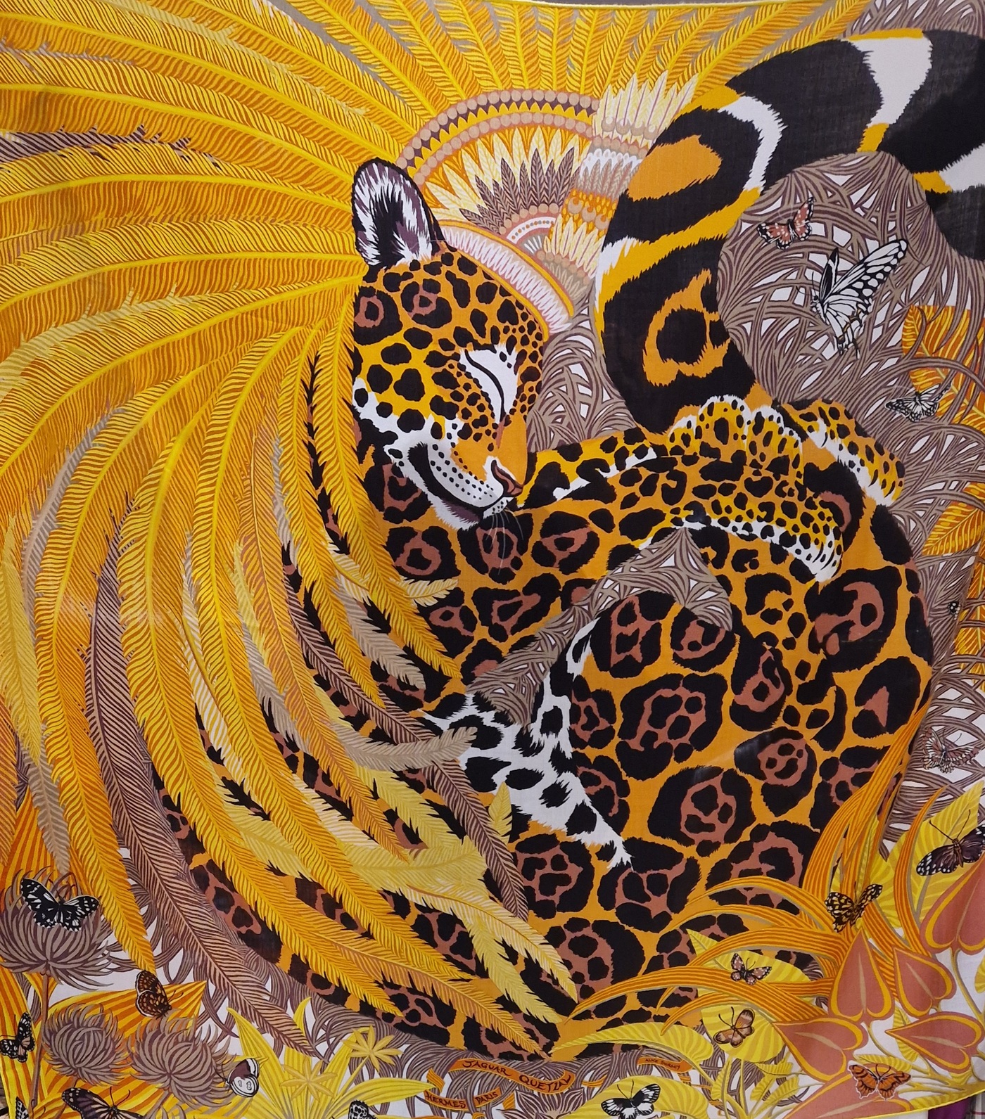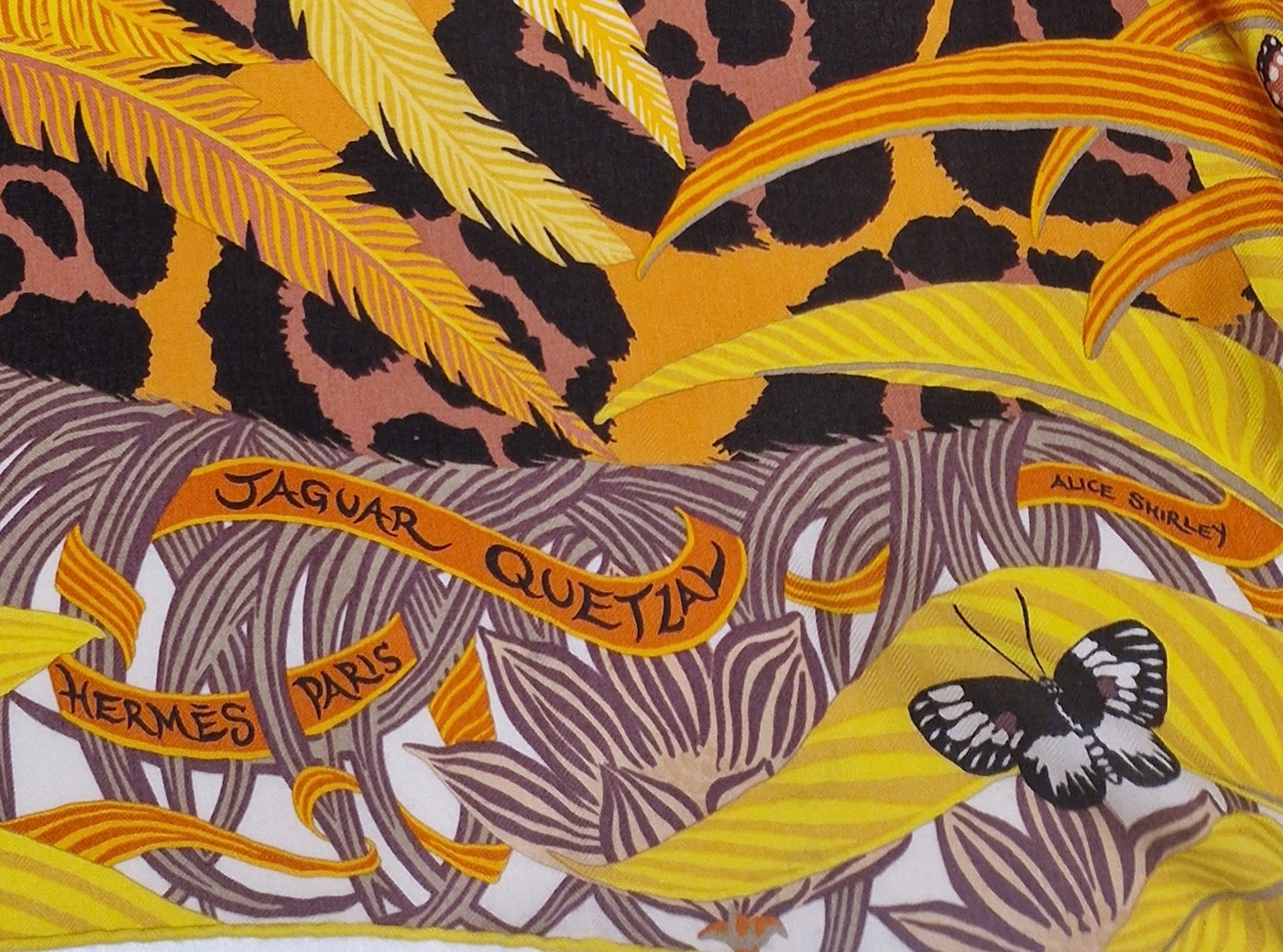 This Hermès “Jaguar Quetzal” shawl was designed by Alice Shirley and released as part of the Spring–Summer 2018 collection.