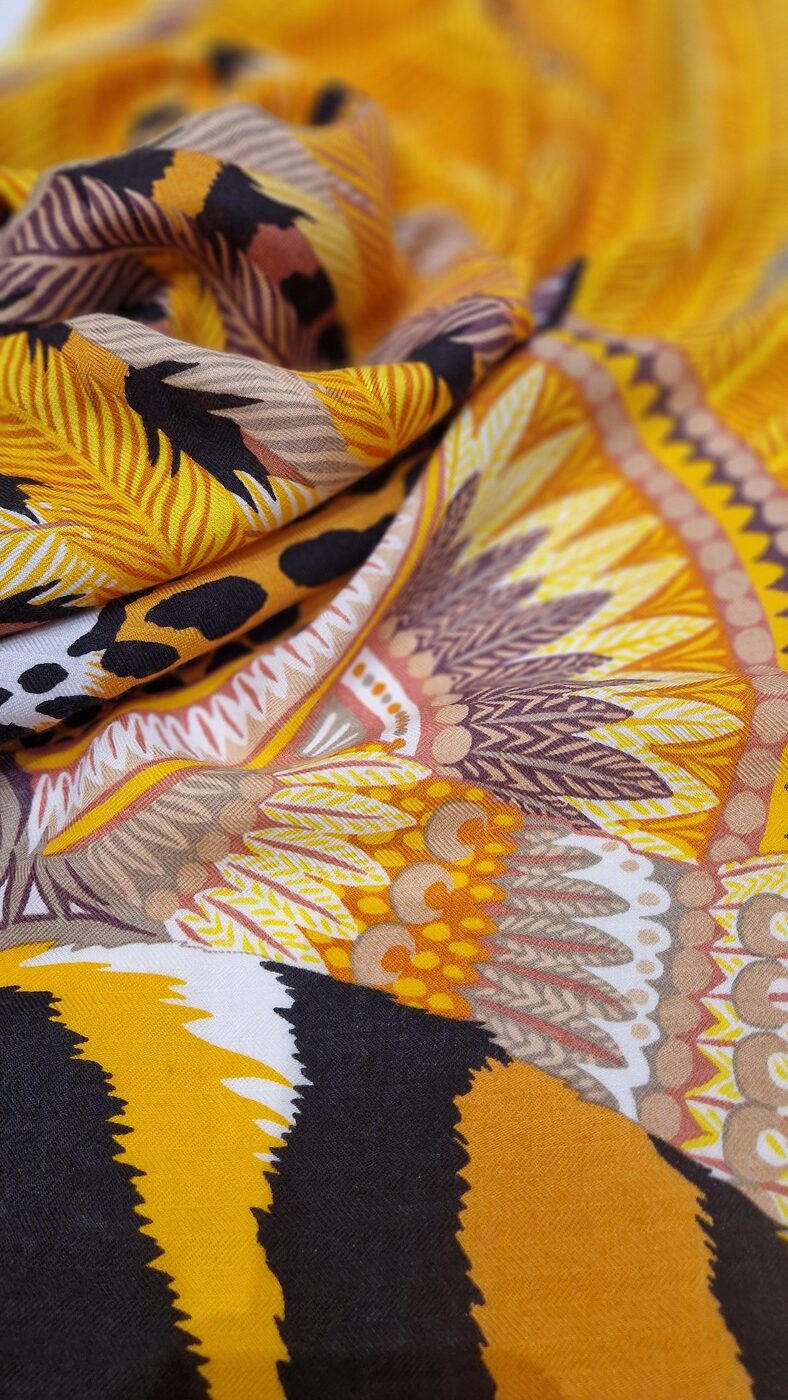 It is particularly beautiful in this colourway, featuring golden yellow, brown, white and grey tones, and is highly sought after.