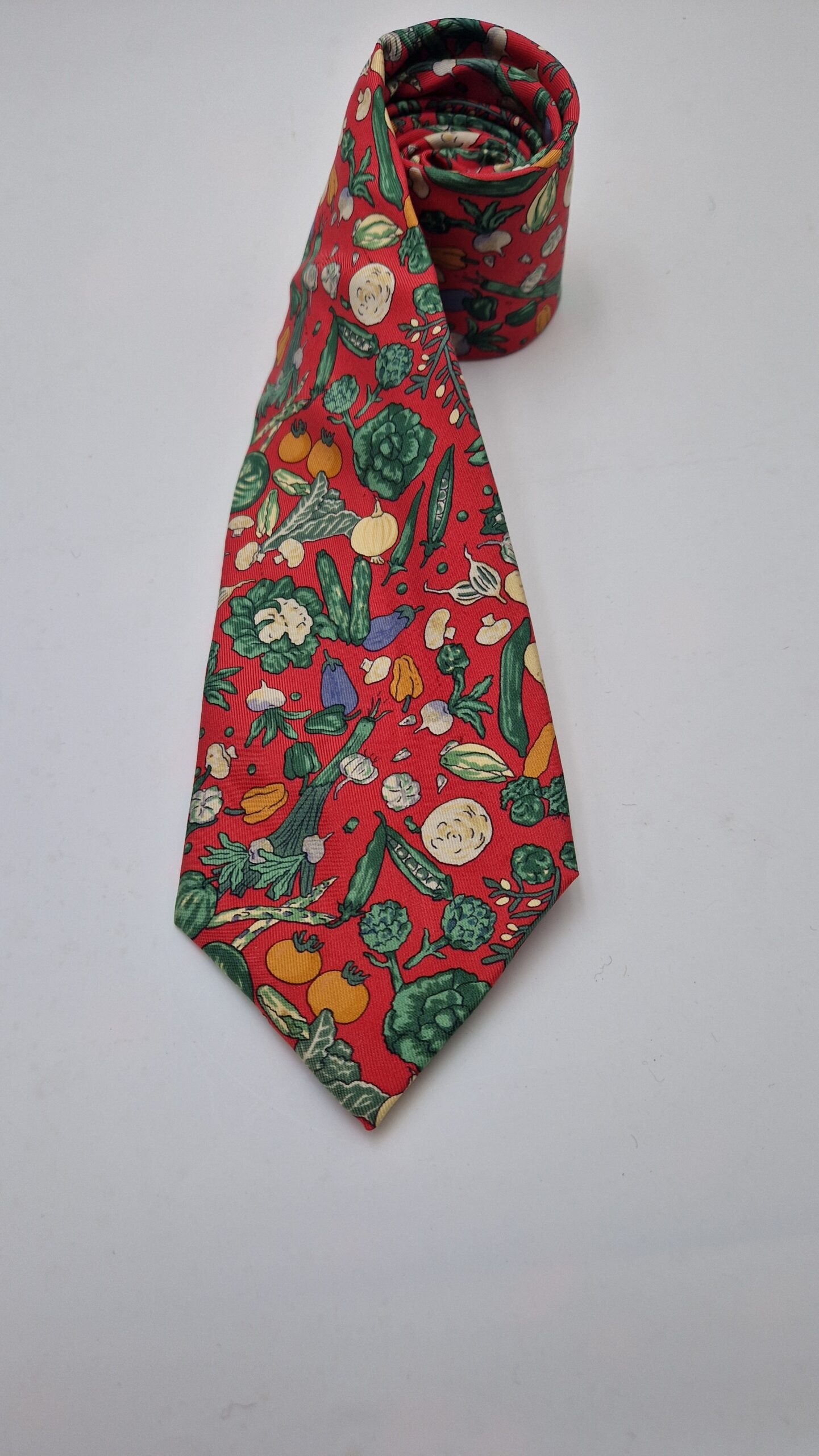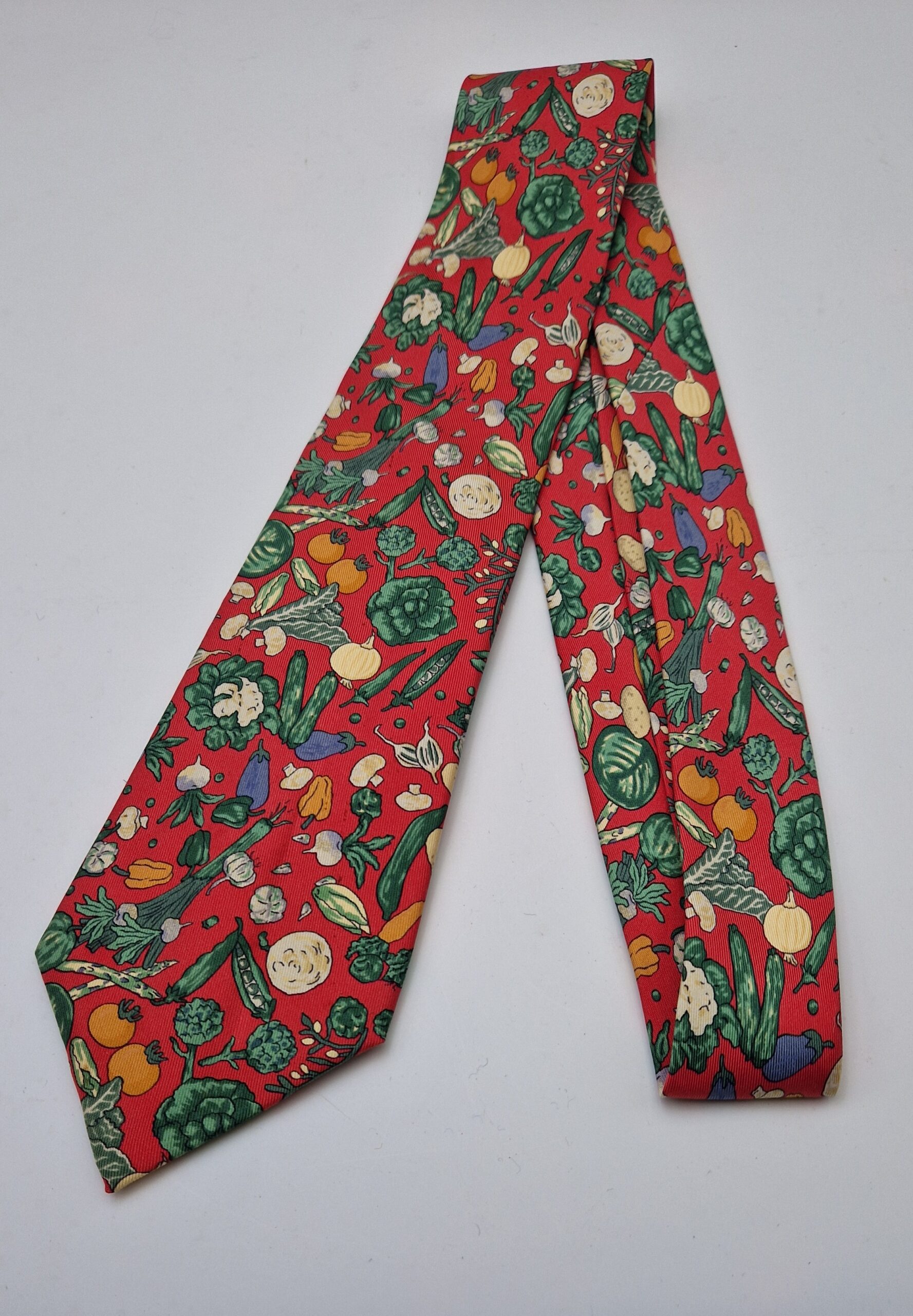 RESERVE Cravate en soie vintage Hermès Les légumes du potager