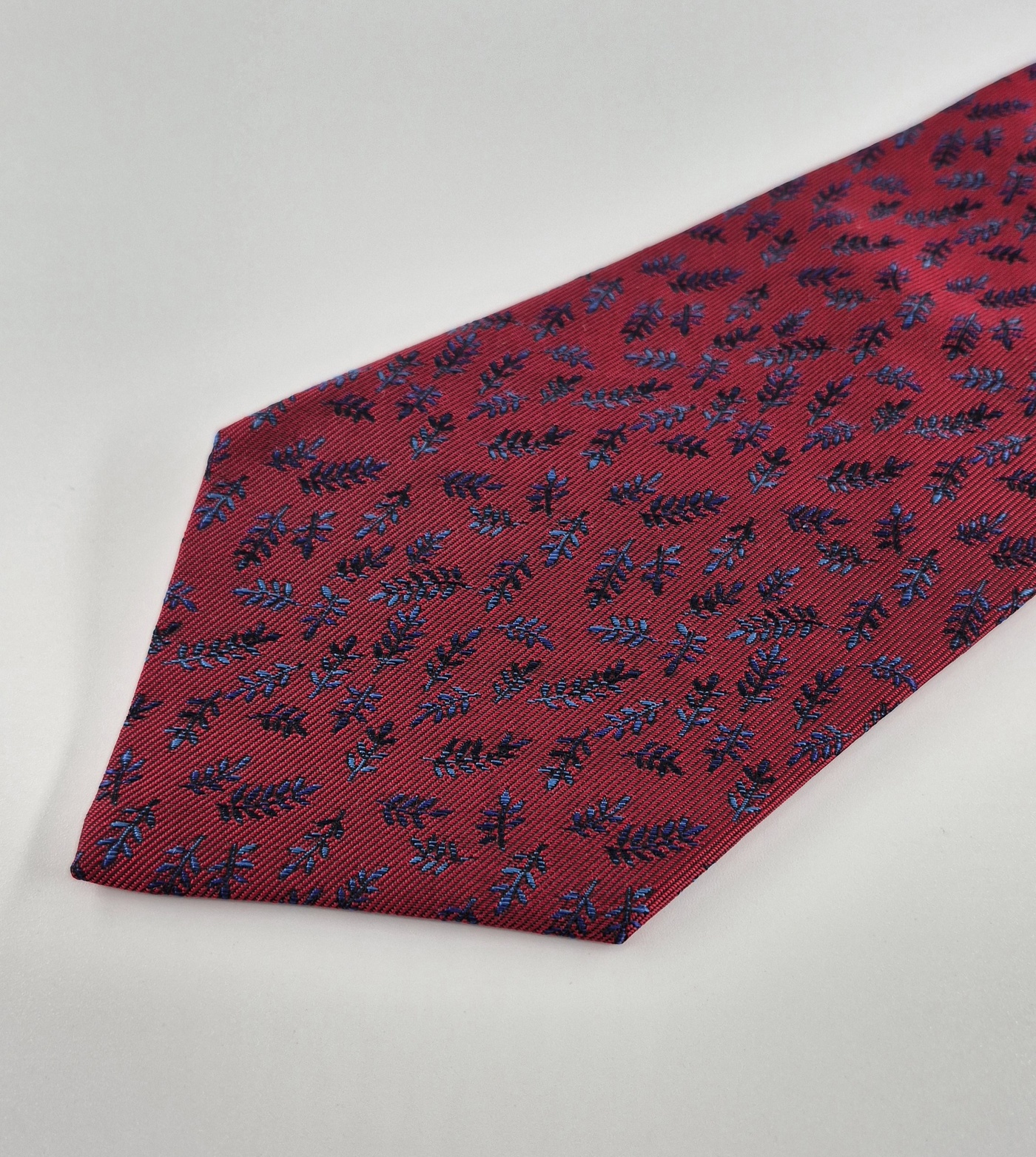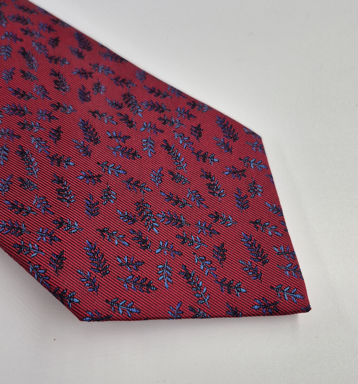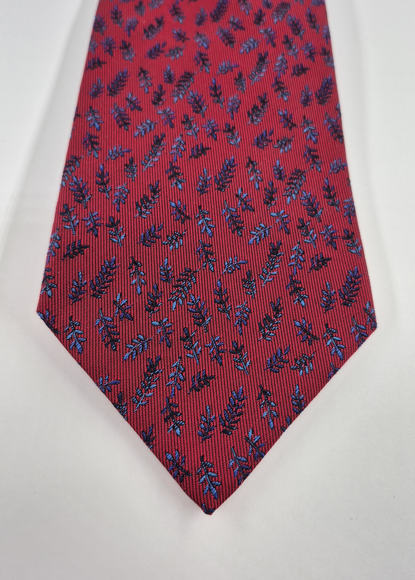 Hermès tie in thick silk in vibrant red with a floral pattern.