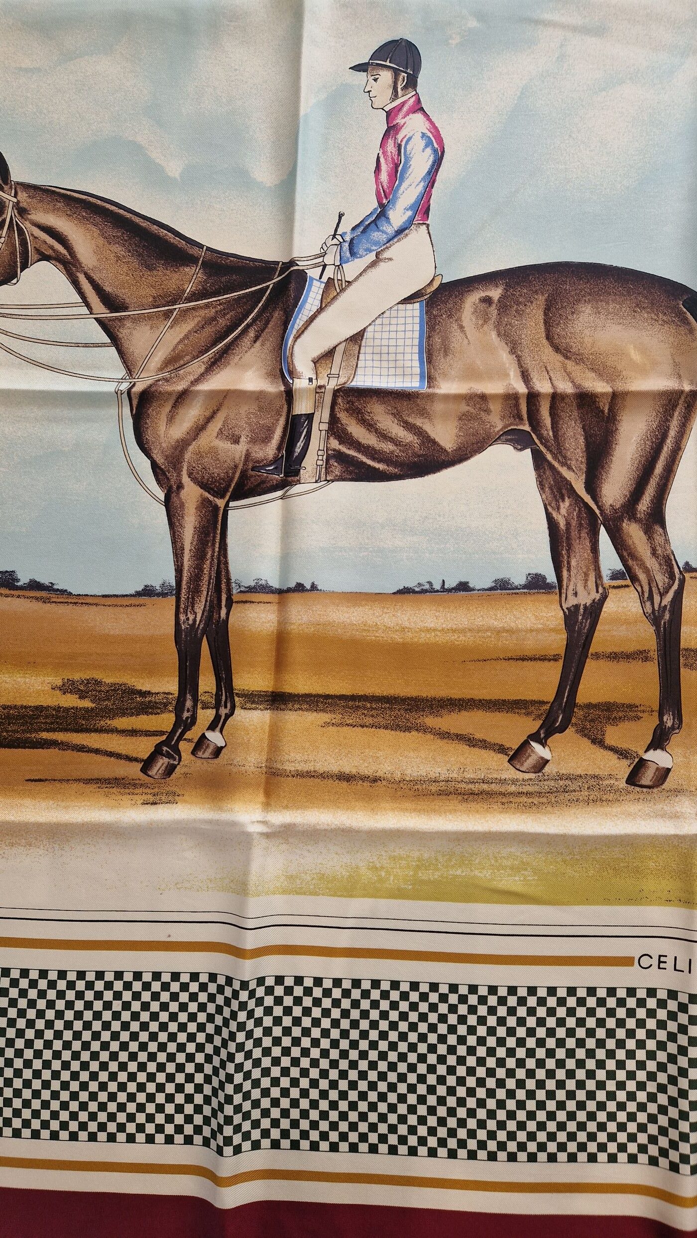 Carré CELINE en soie , ourlé à la main