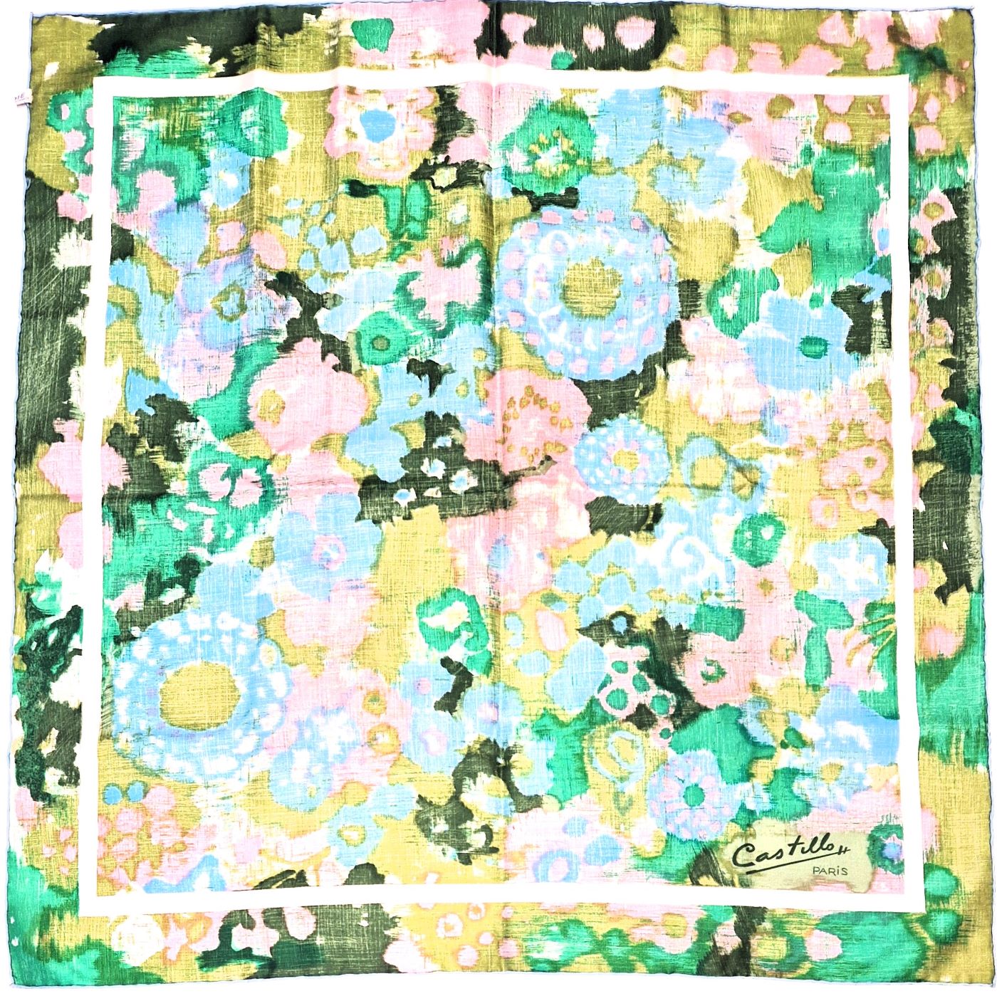 Rare foulard en soie  signé Castillo , il date des années 60 , époque à laquelle Castillo crée sa propre maison de couture