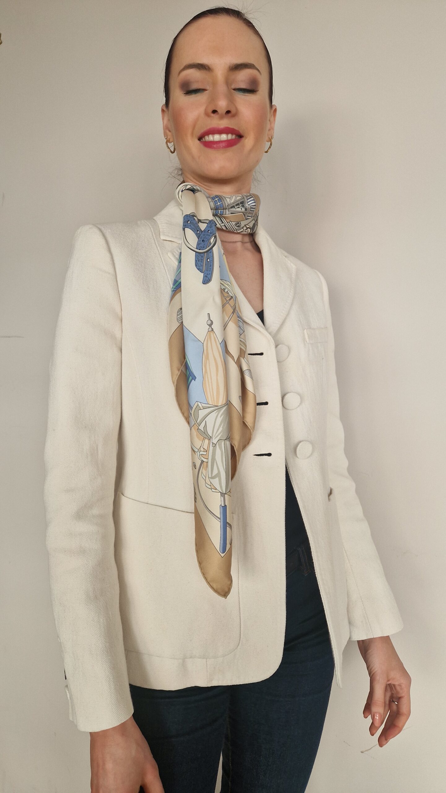 Ce carré est proposé sans boîte, néanmoins je rappelle que tout acquéreur d’un carré peut acheter une authentique boîte à carrés Hermès pour la somme de 20€. Elle sera est en très bon état ou bon état, le ruban sera offert.