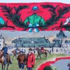 Coloris de fond rouge, elle est en excellent état . Cependant les ourlets sont aplatis