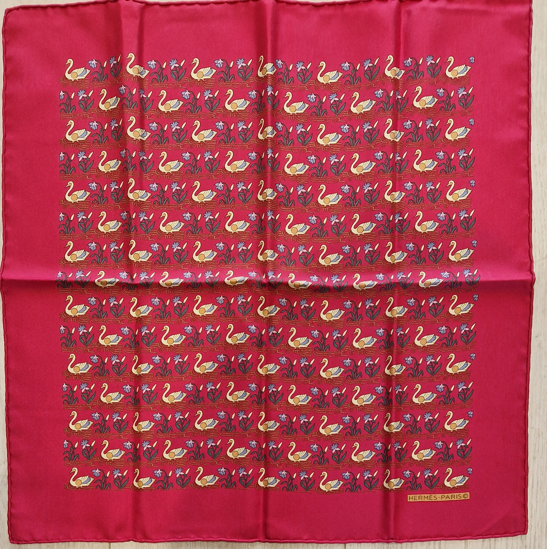 Ce carré Hermès vintage aux motifs de cygne est en parfait état , comme neuf.