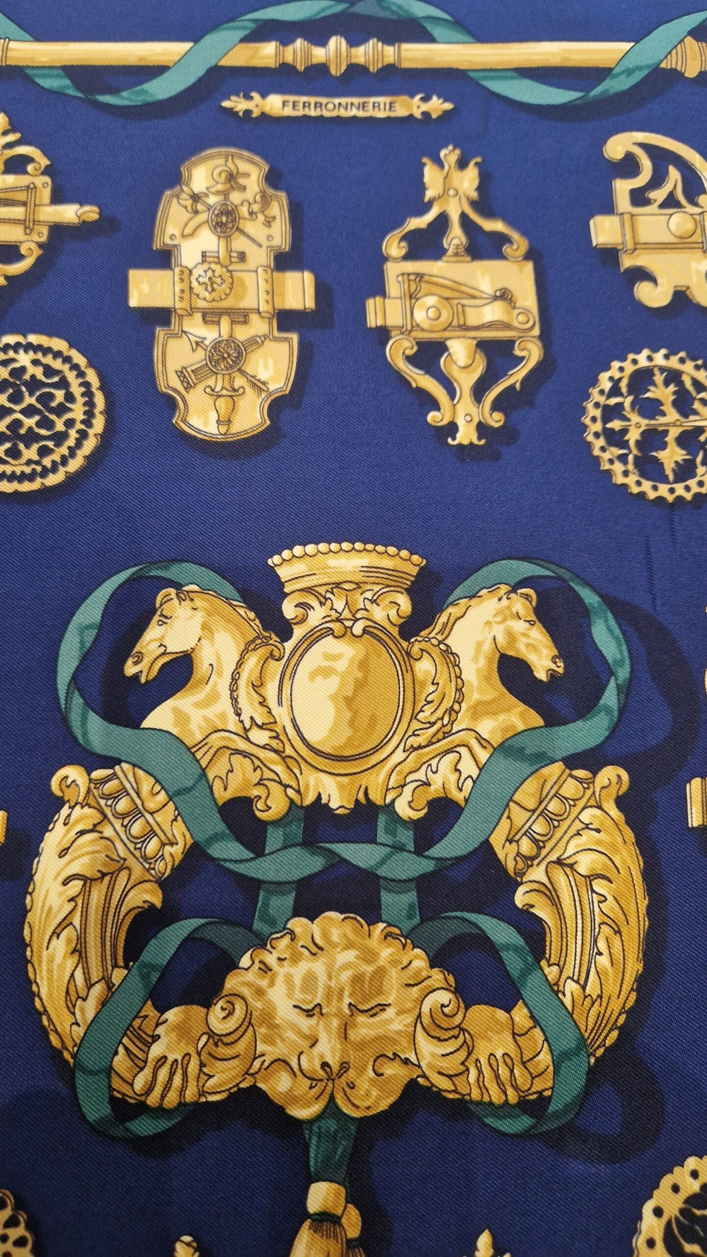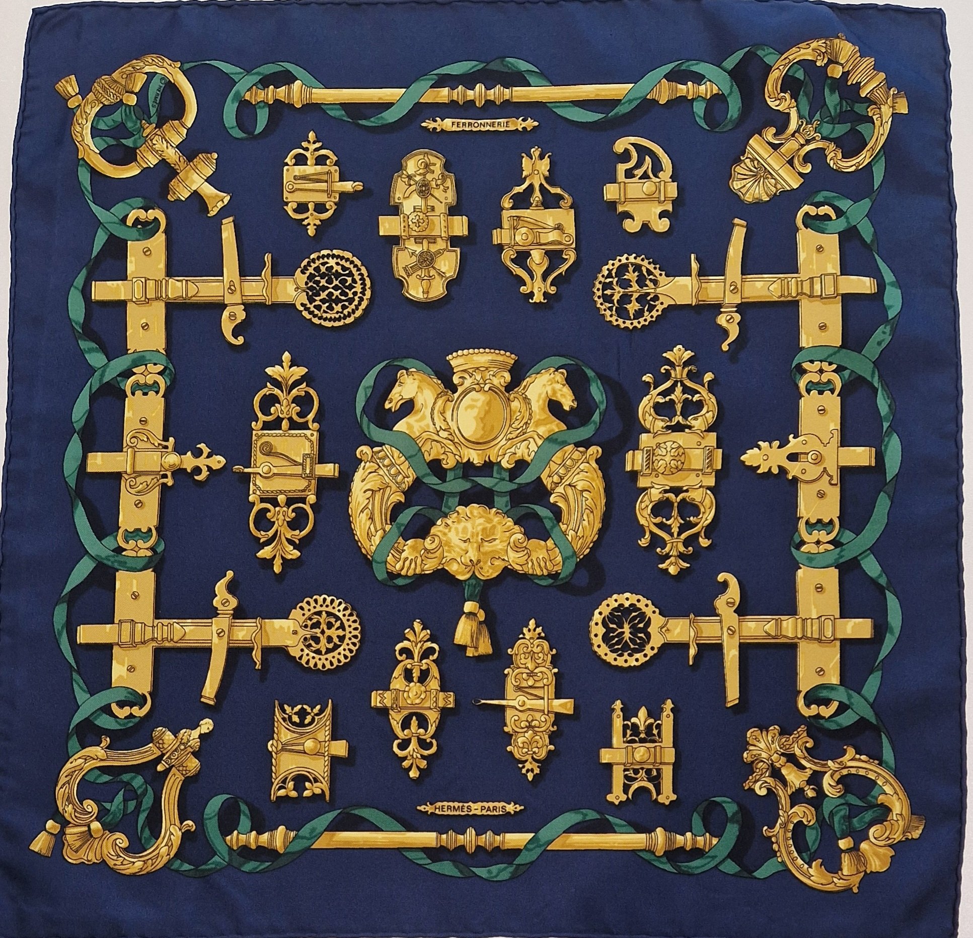 Cette pochette en soie Hermès Ferronnerie  a été dessinée par  Caty Latham  et éditée en 1970