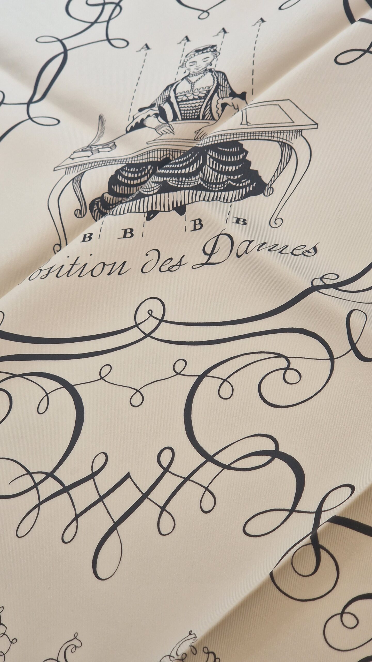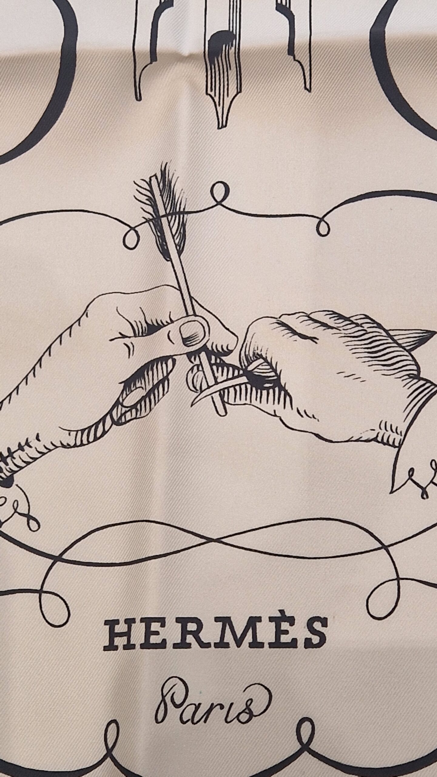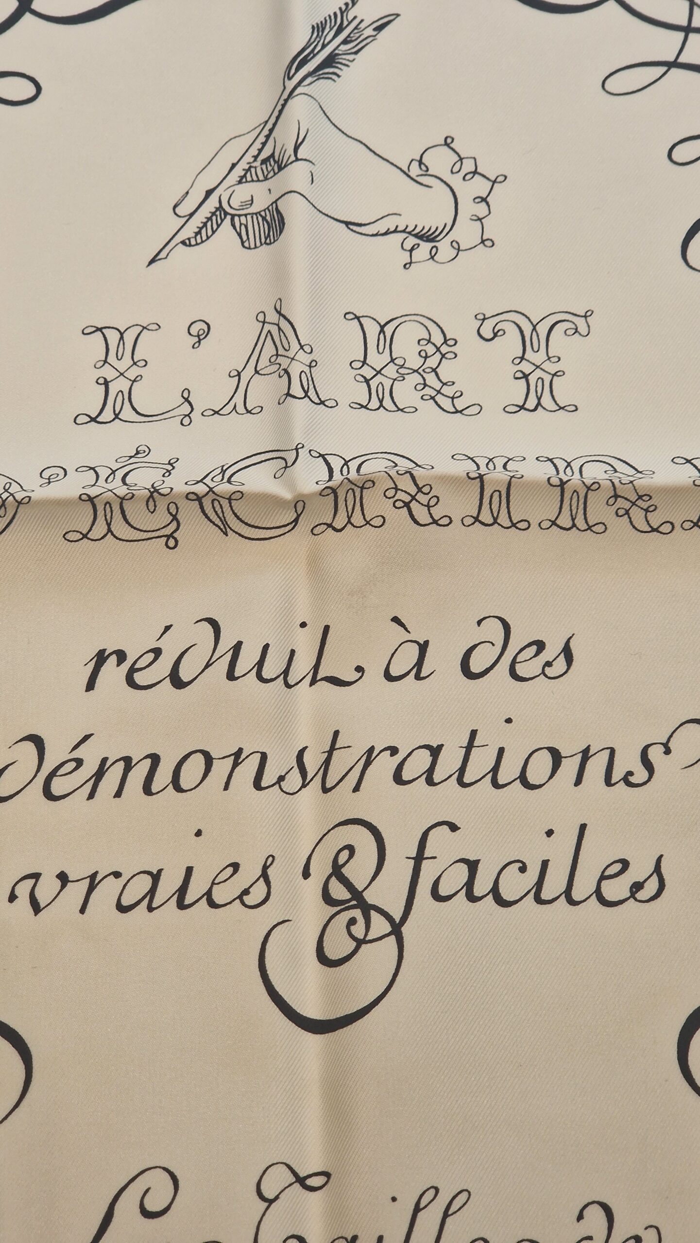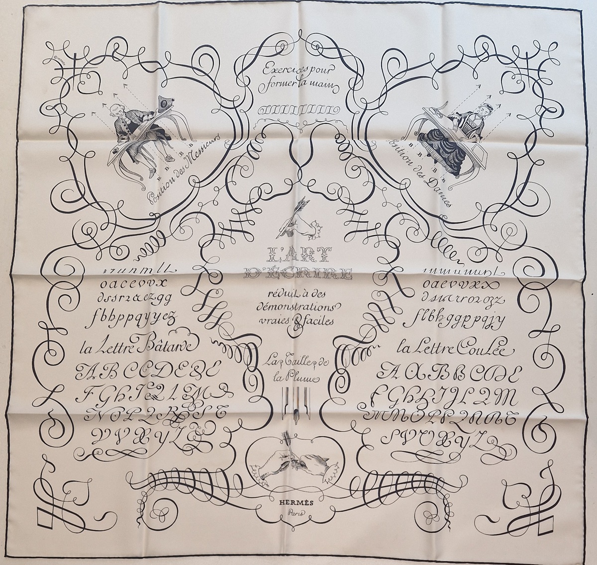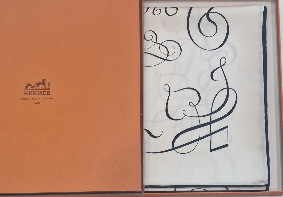 Hermès silk scarf L’Art d’Écrire, the 2005 reissue of the original 1957 design.