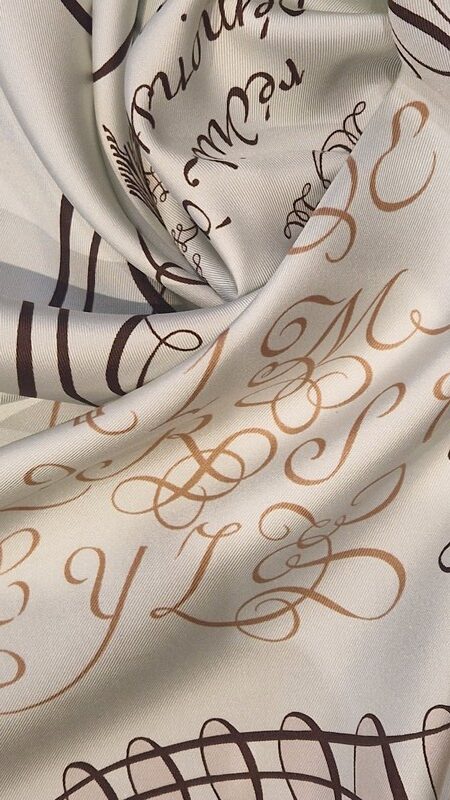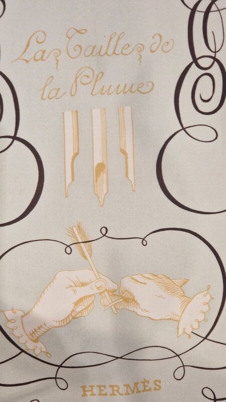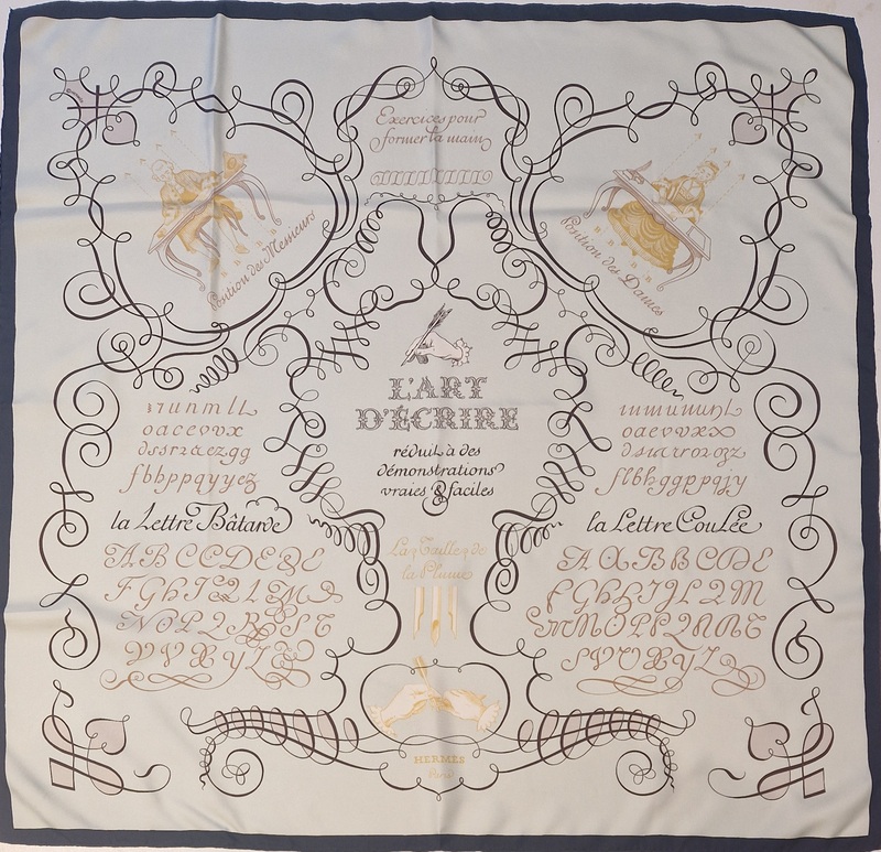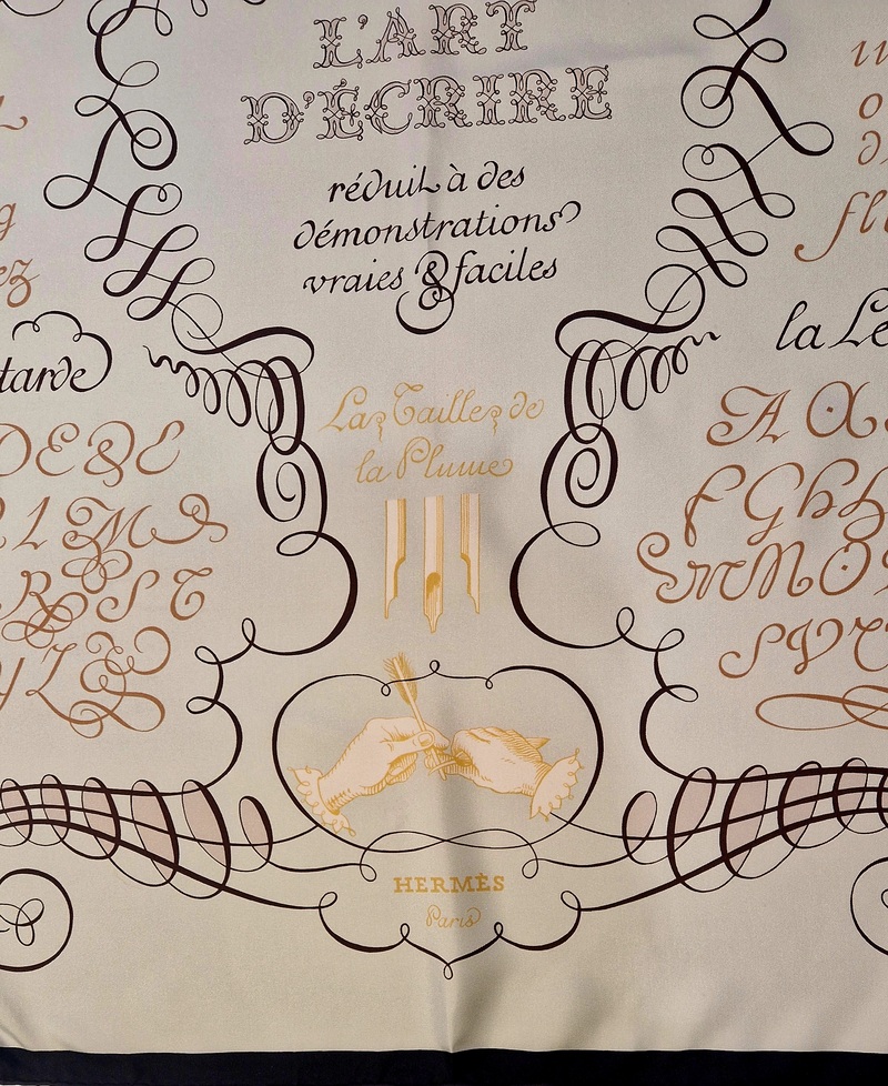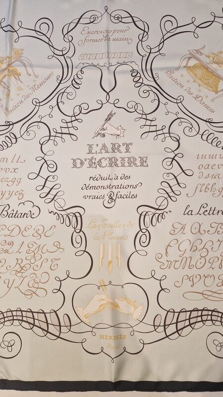 Hermès silk scarf L’Art d’Écrire, the 2005 reissue of the original 1957 design.