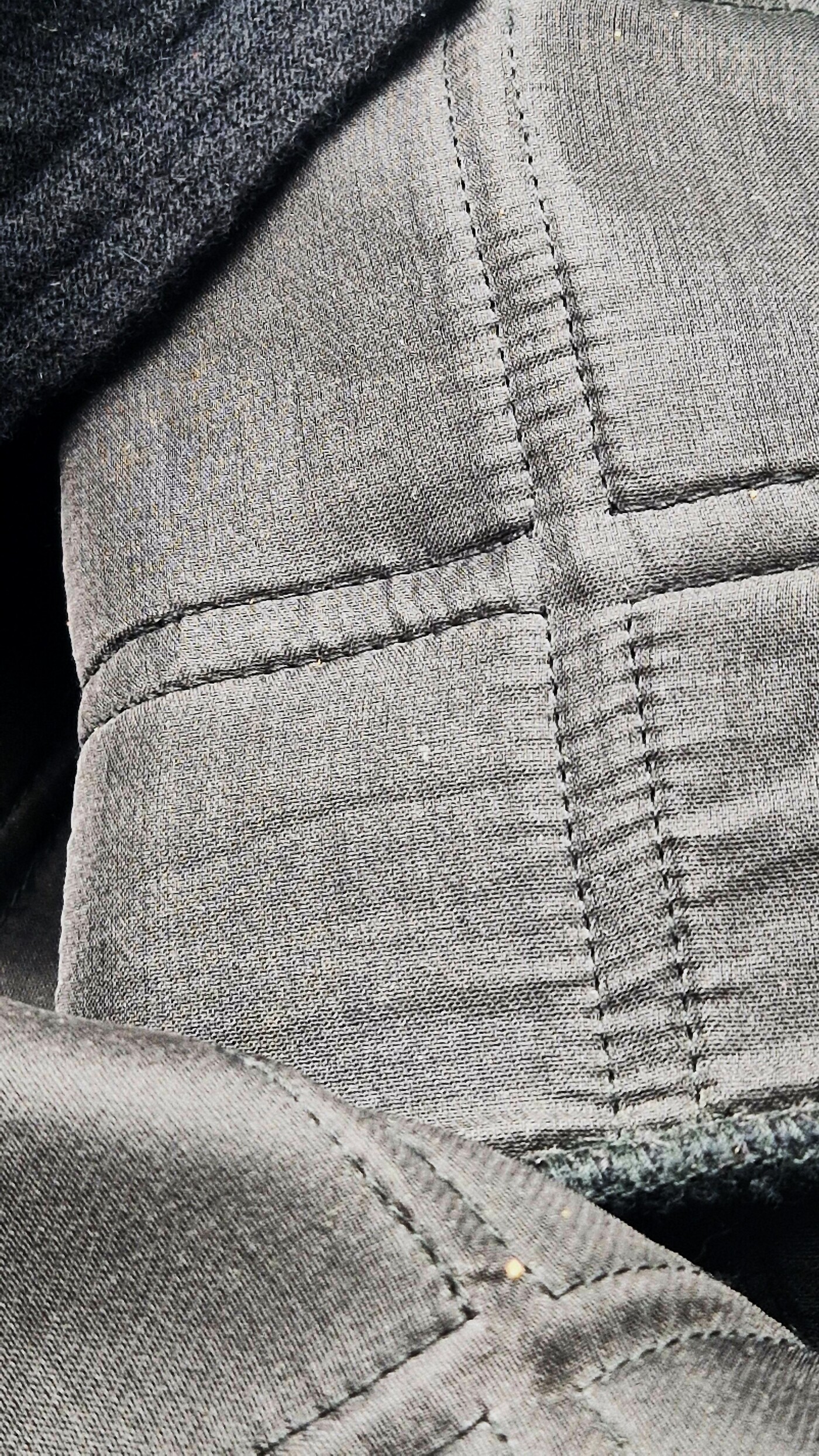 Elle est réalisée en carreaux en laine, appliqués sur soie, pour un effet matelassé