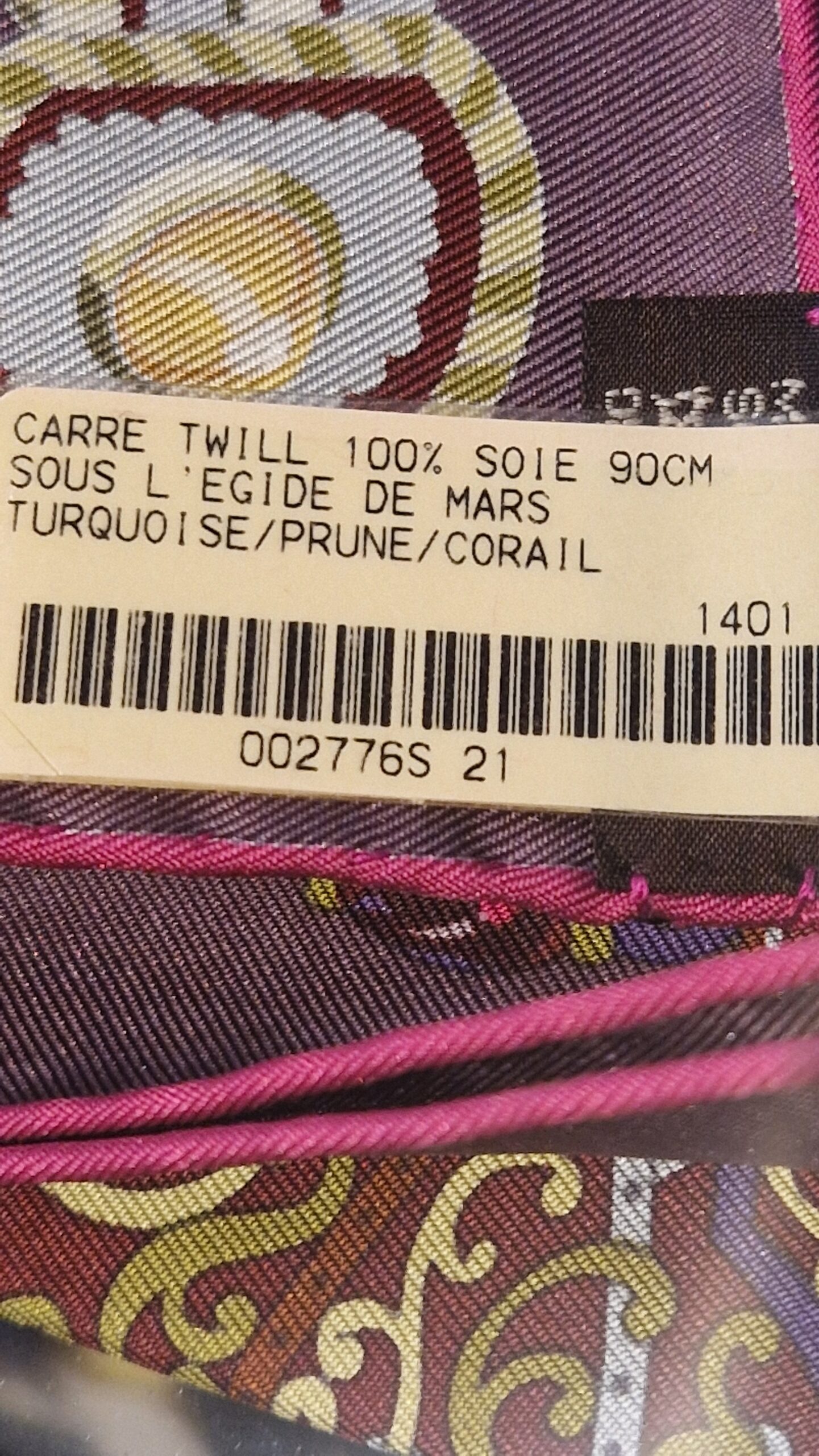 This scarf comes from an official Hermès private sale. Very discreet “S” markings, visible only on the label photos, attest to this provenance.
