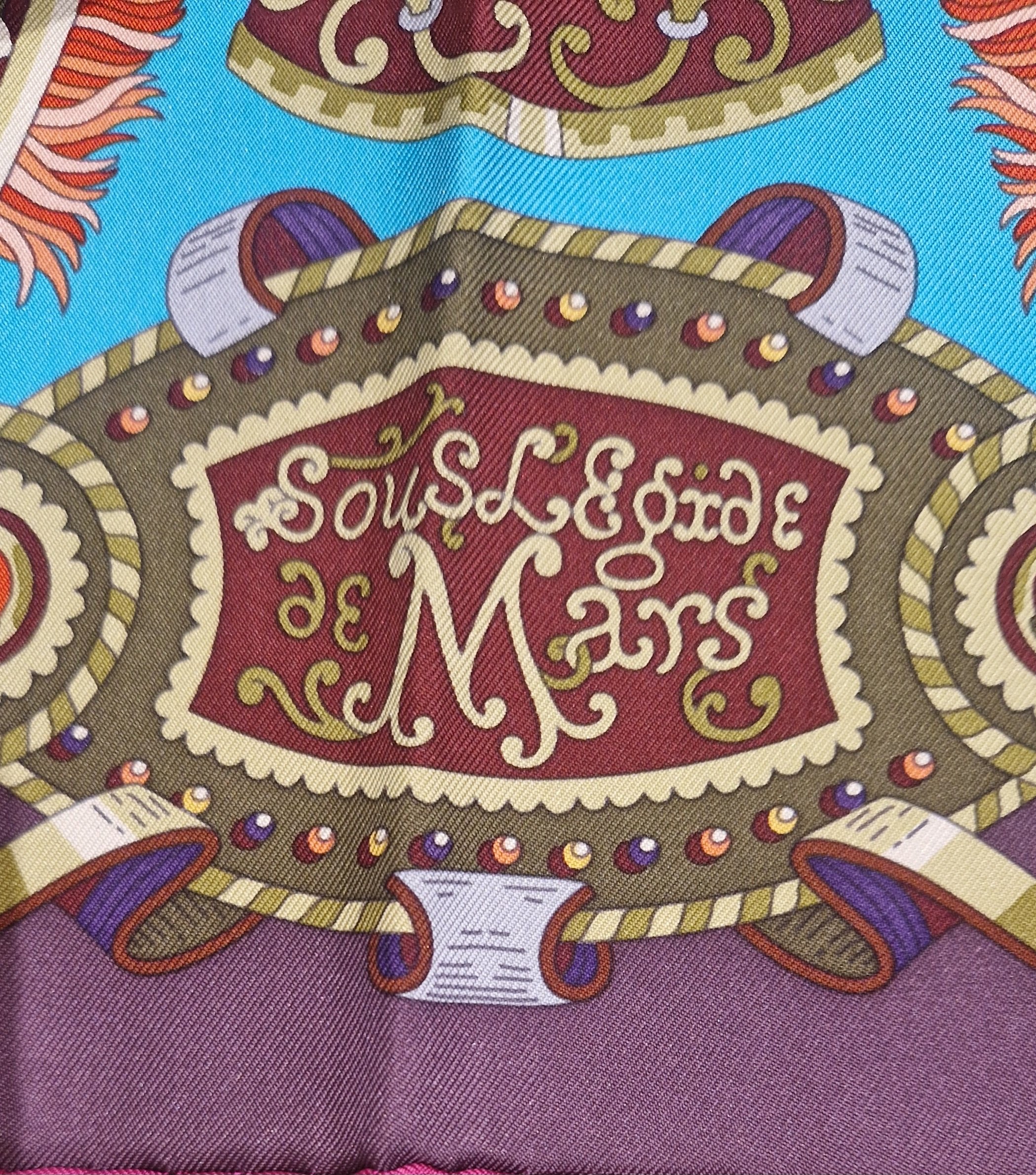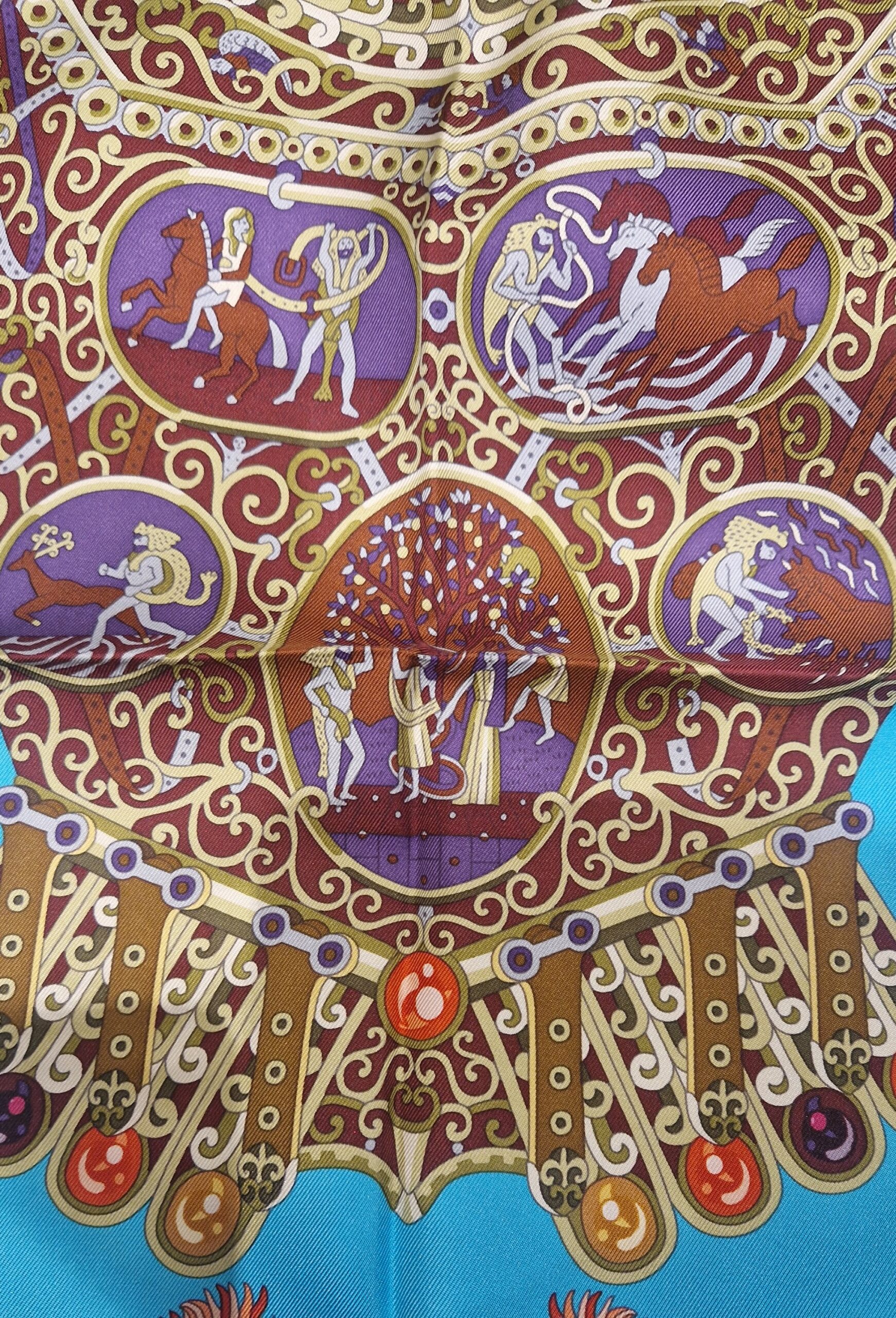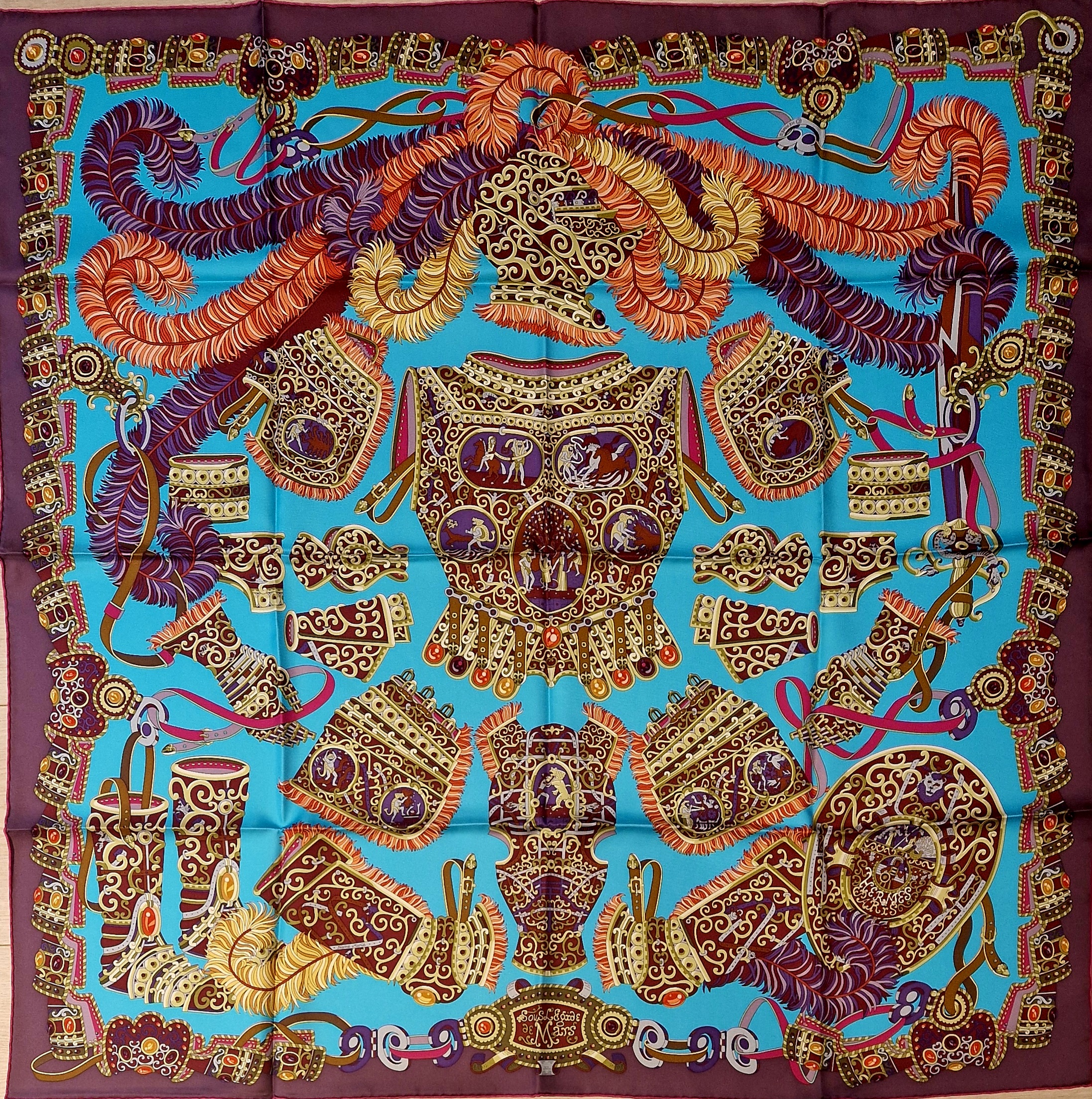 This stunning Hermès silk scarf Sous l’Égide de Mars was designed by Pierre Marie and released in 2013.