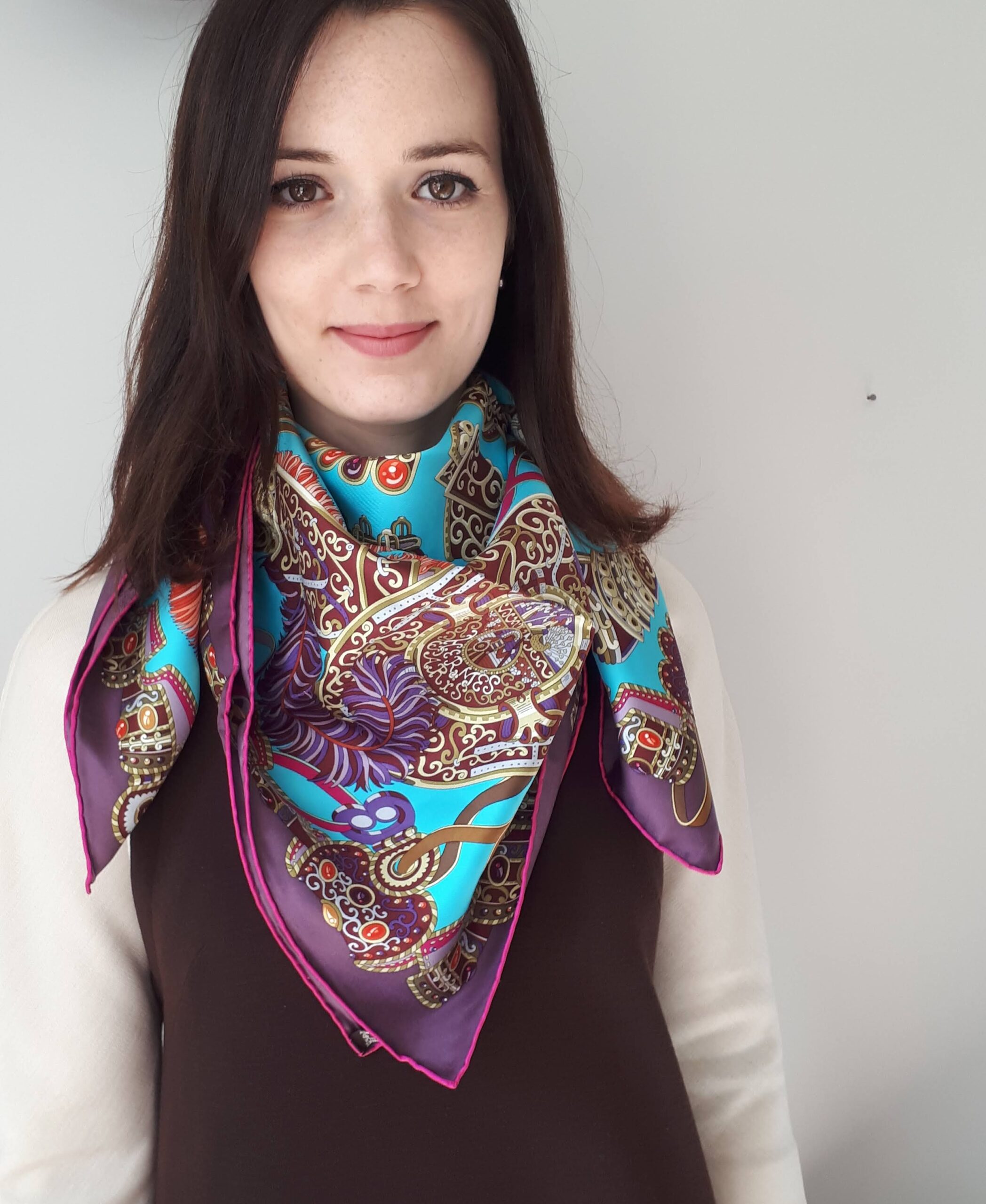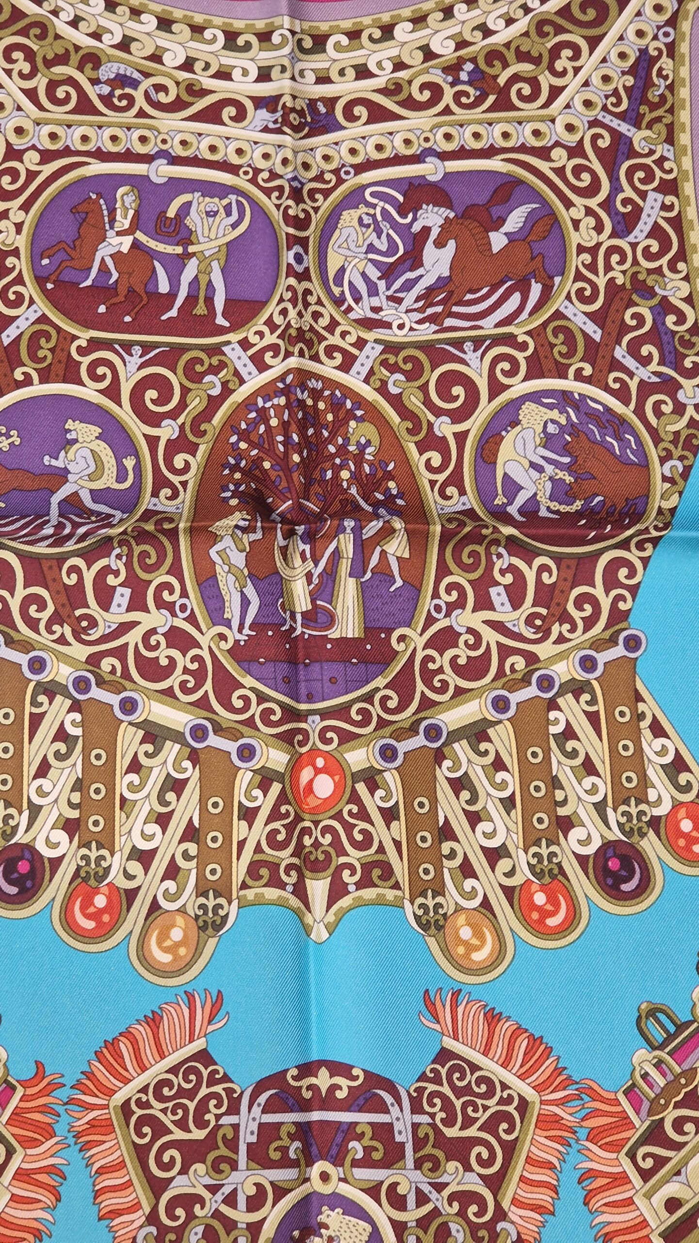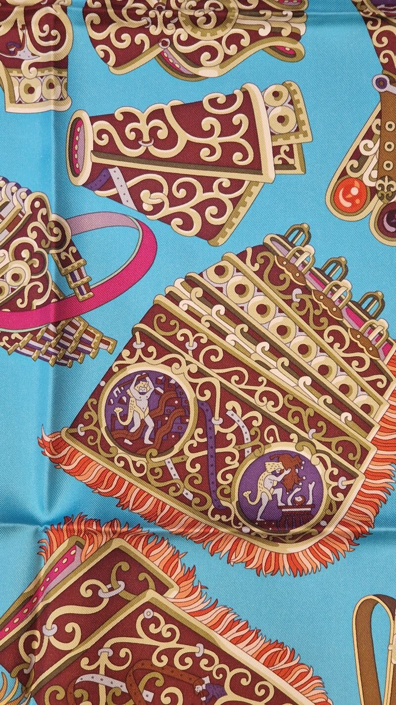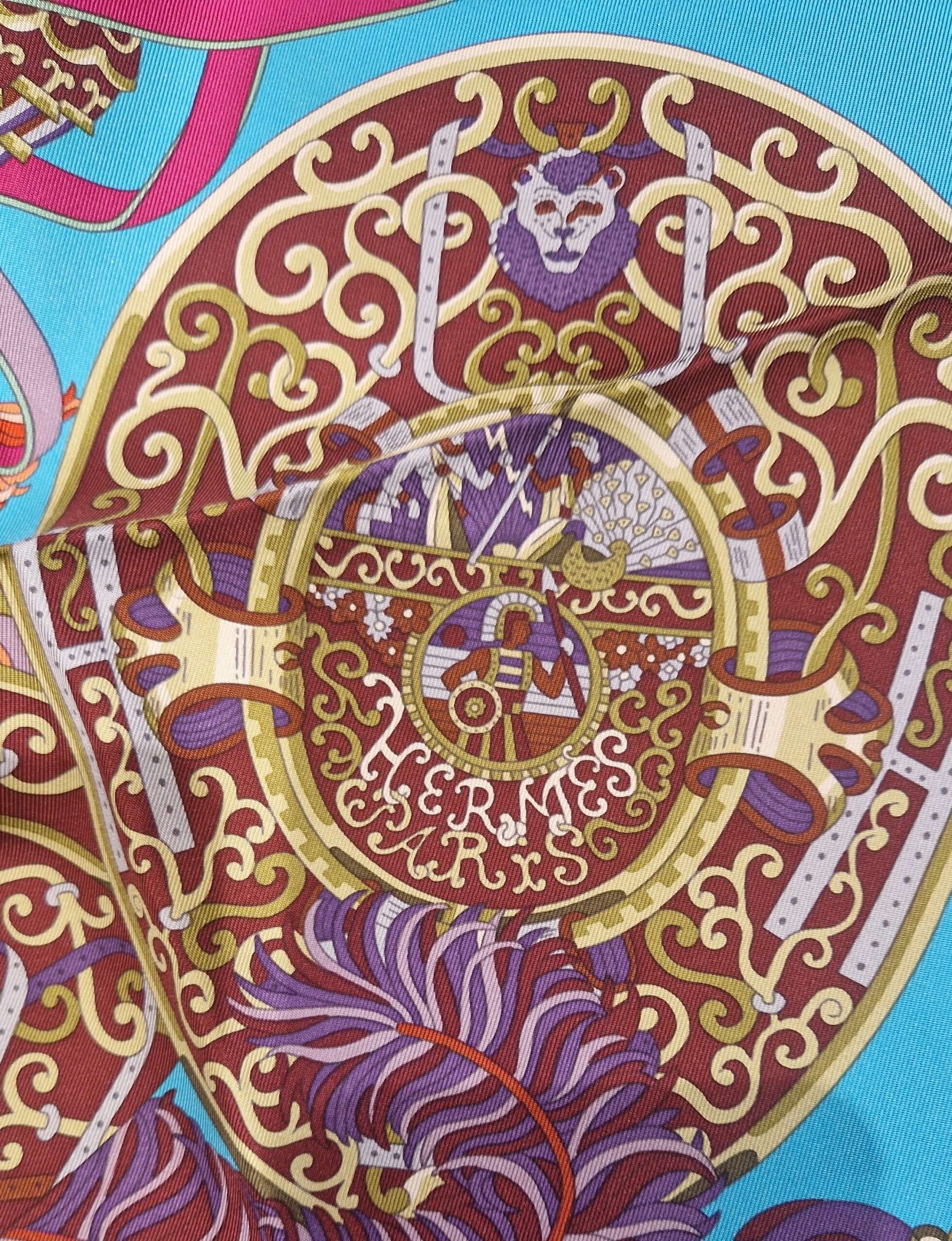This stunning Hermès silk scarf Sous l’Égide de Mars was designed by Pierre Marie and released in 2013.