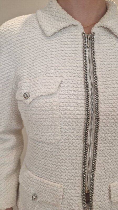 Silver-tone metal buttons featuring Chanel’s emblematic lion — a nod to Gabrielle Chanel’s astrological sign