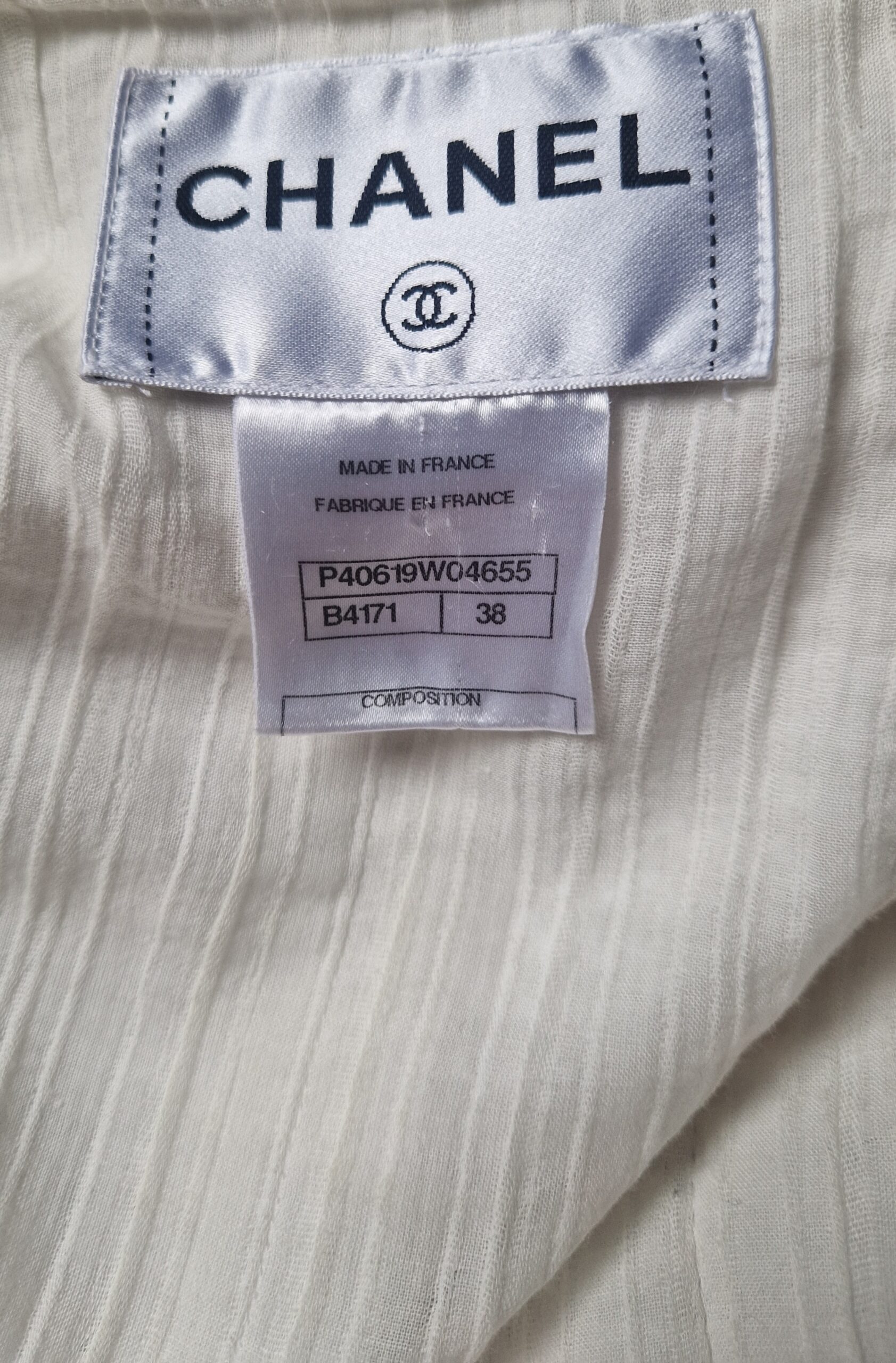Absolute elegance with this Chanel skirt suit from the Spring-Summer 2019 Ready-to-Wear Collection, crafted in white tweed — a symbol of the House’s timeless chic and structured style.