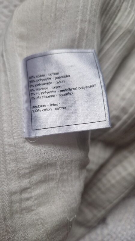 46% cotton, 39% polyester, 6% polyamide, 5% viscose, 3% metallic polyester, 1% elastane