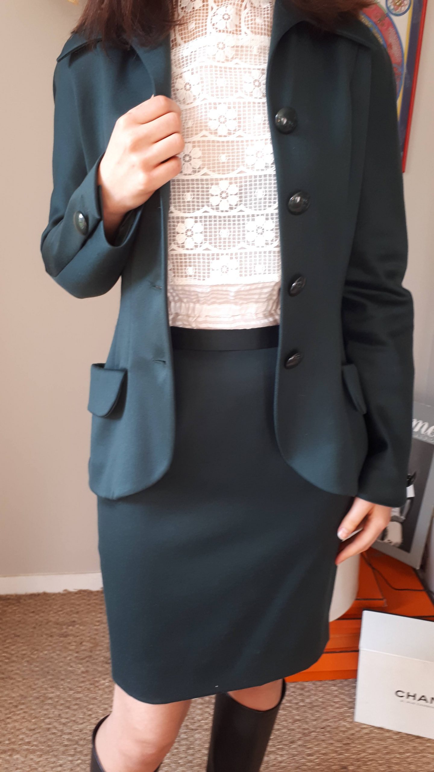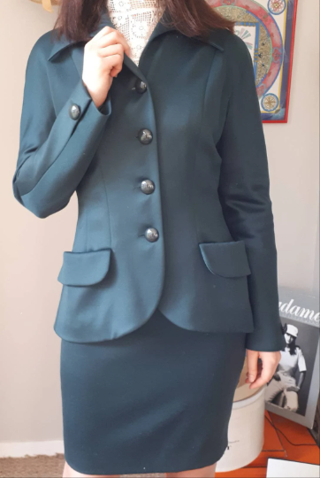 Elle est doublée et se ferme devant par 4 boutons et comporte 2 vraies poches