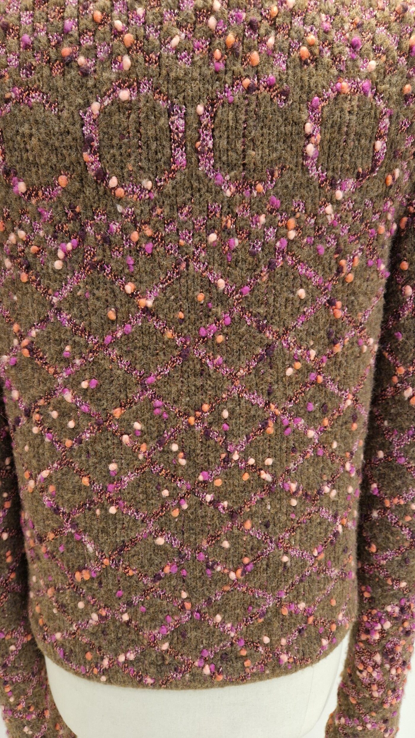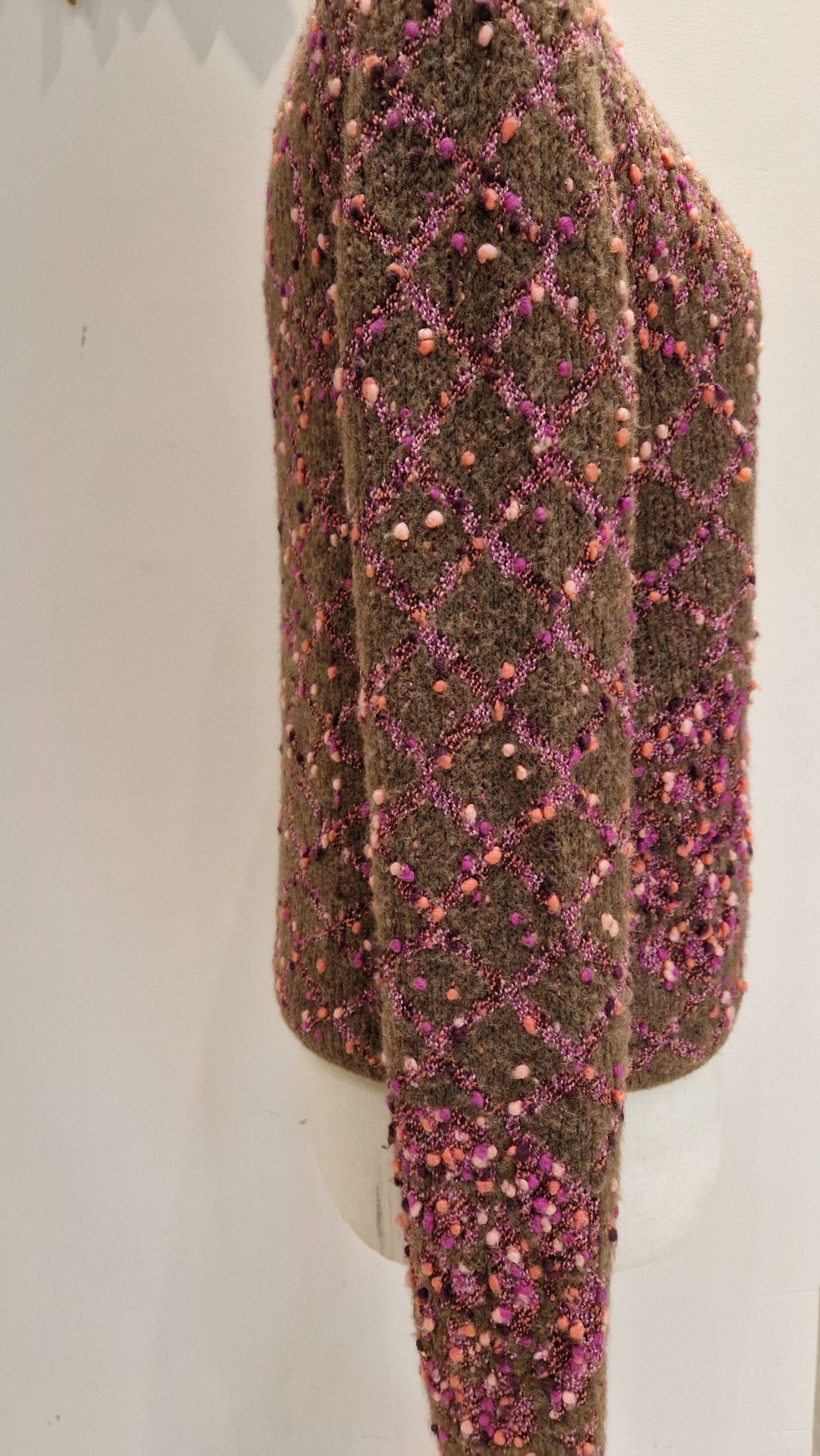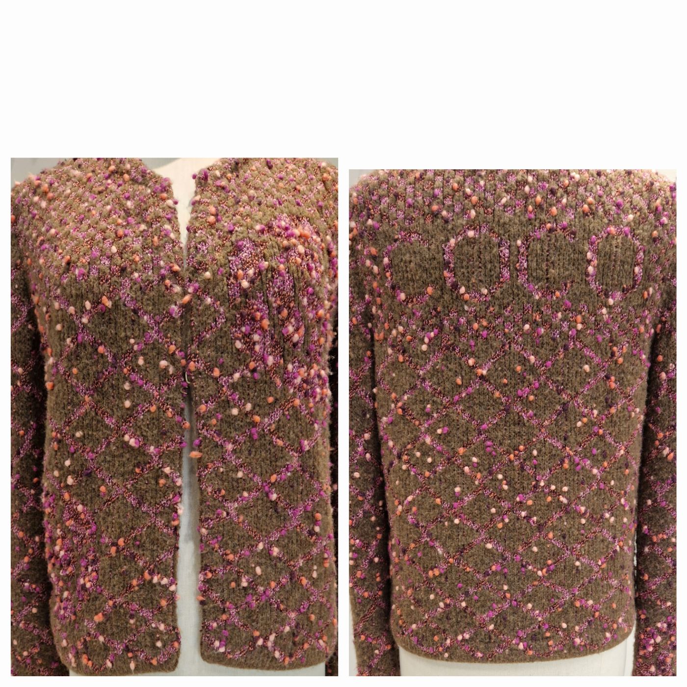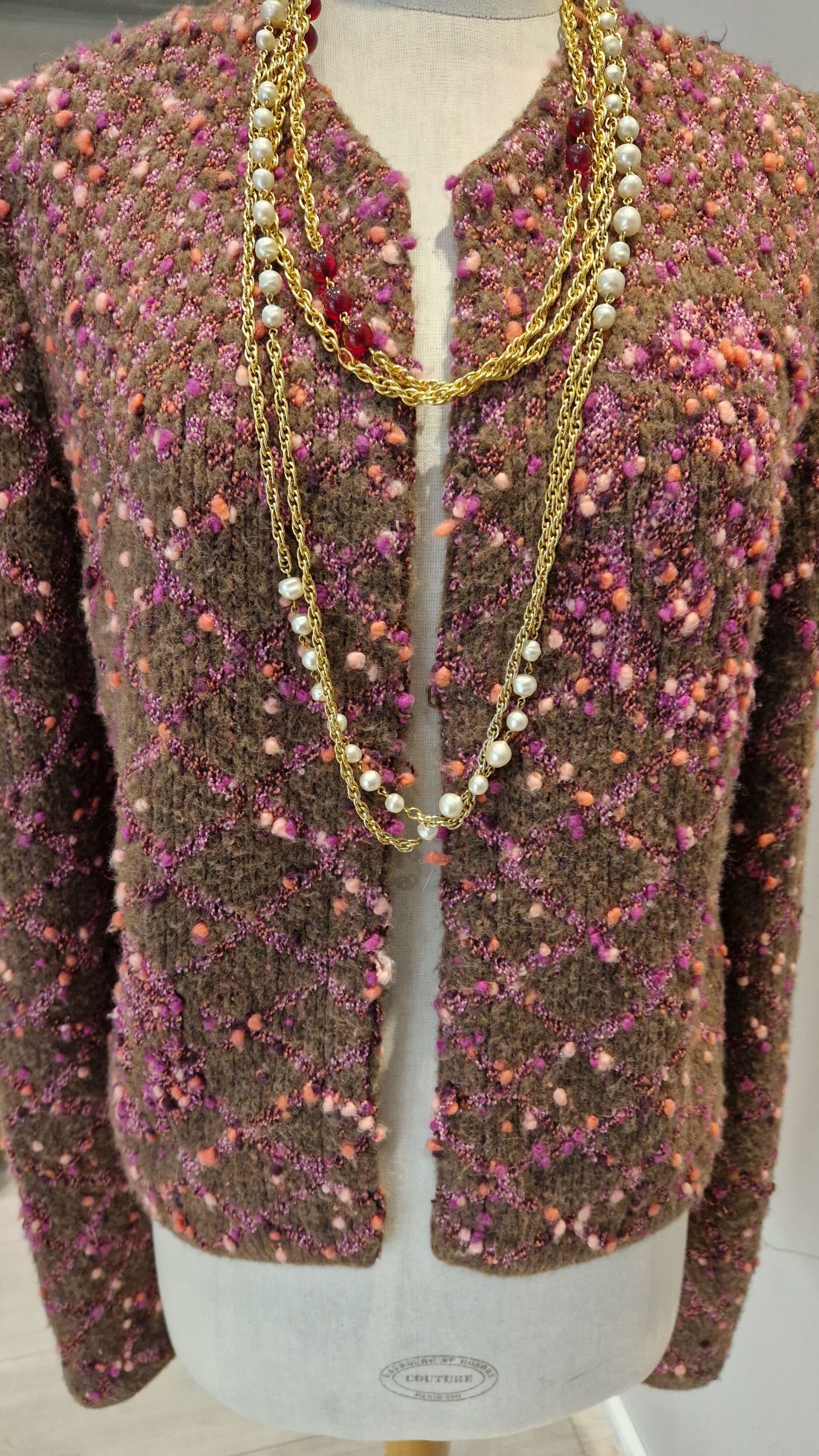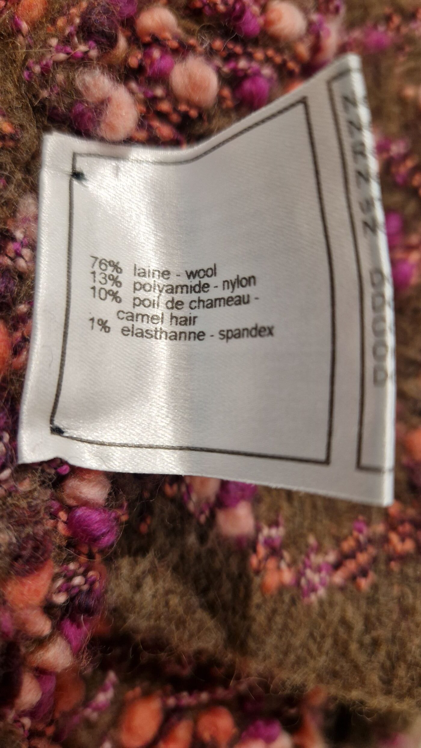 Magnifique veste tricotée  Chanel en laine , polyamide, poil de chameau, elasthane.